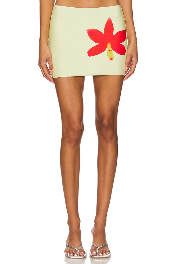 96% polyester, 4% elastane Made in London Hand wash Unlined Pull-on style Item not sold as a set Skirt measures approx 30 cm in length Revolve Style No. 1XBR-WQ9 Manufacturer Style No. ORCHIDSKIRT |