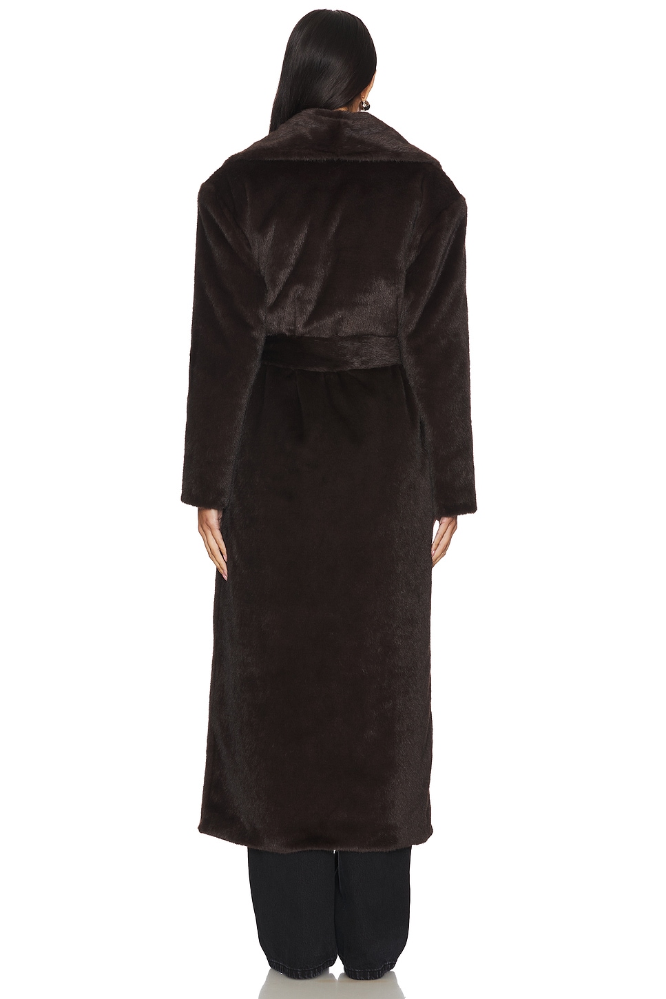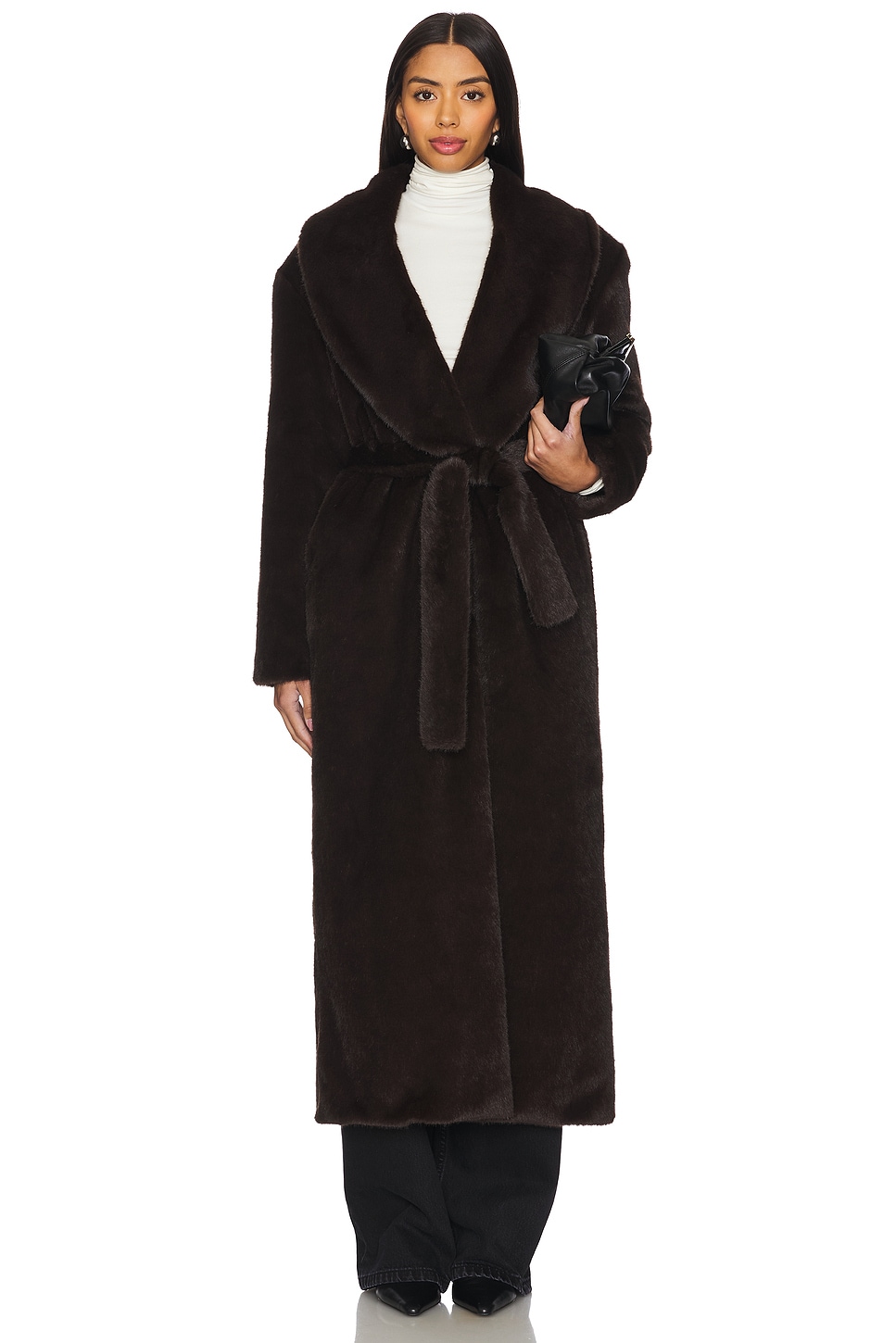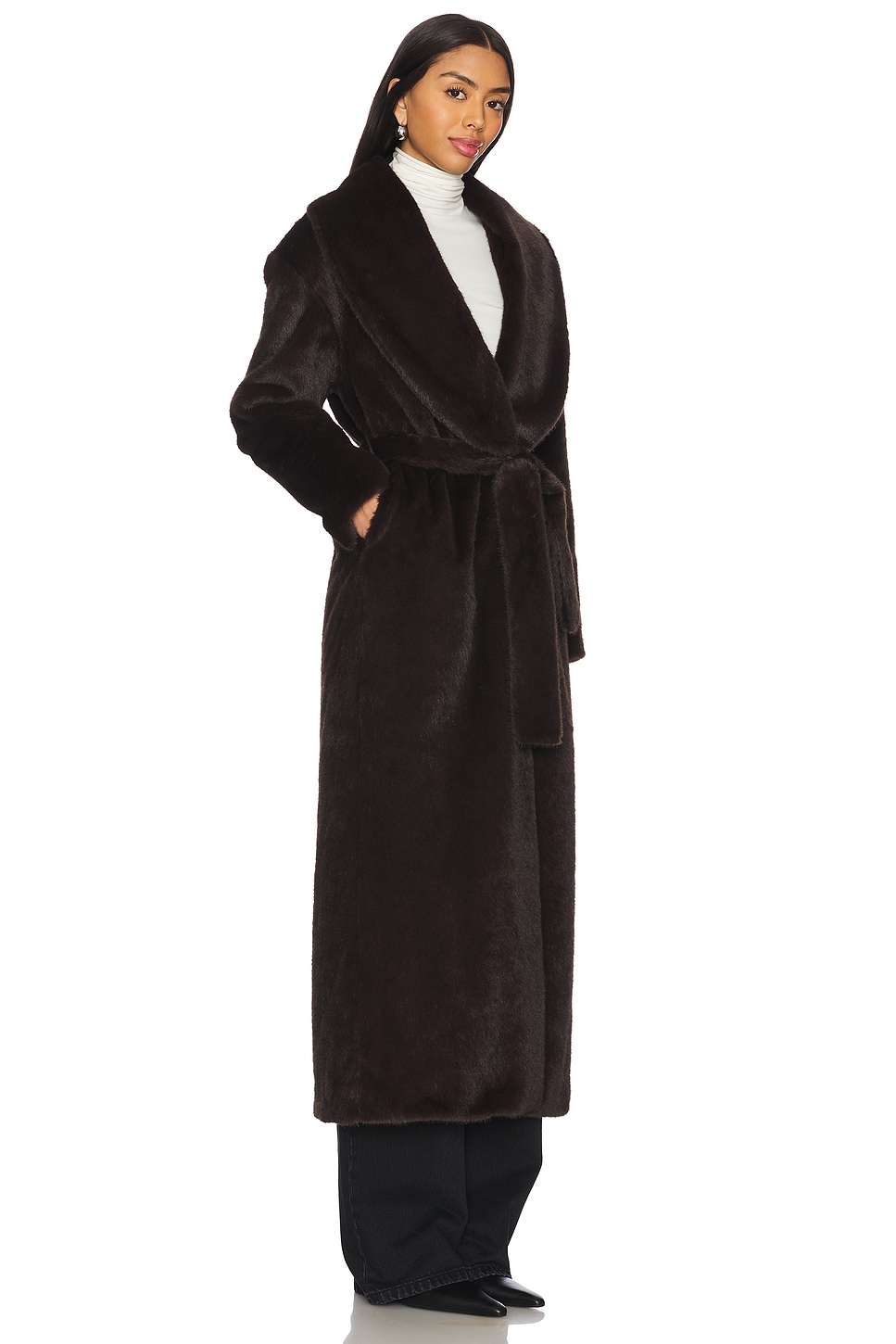 Self: 100% polyester Made in China Dry clean only Front button closure with optional belt Side slit pockets Faux fur fabric Revolve Style No. AEXR-WO11 Manufacturer Style No. AX80923 |