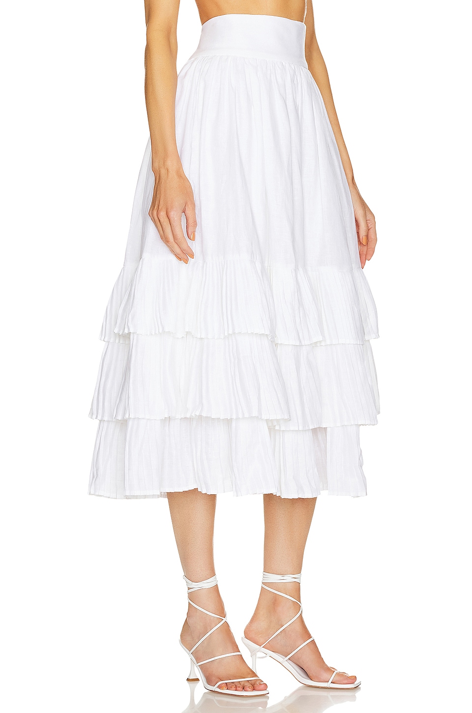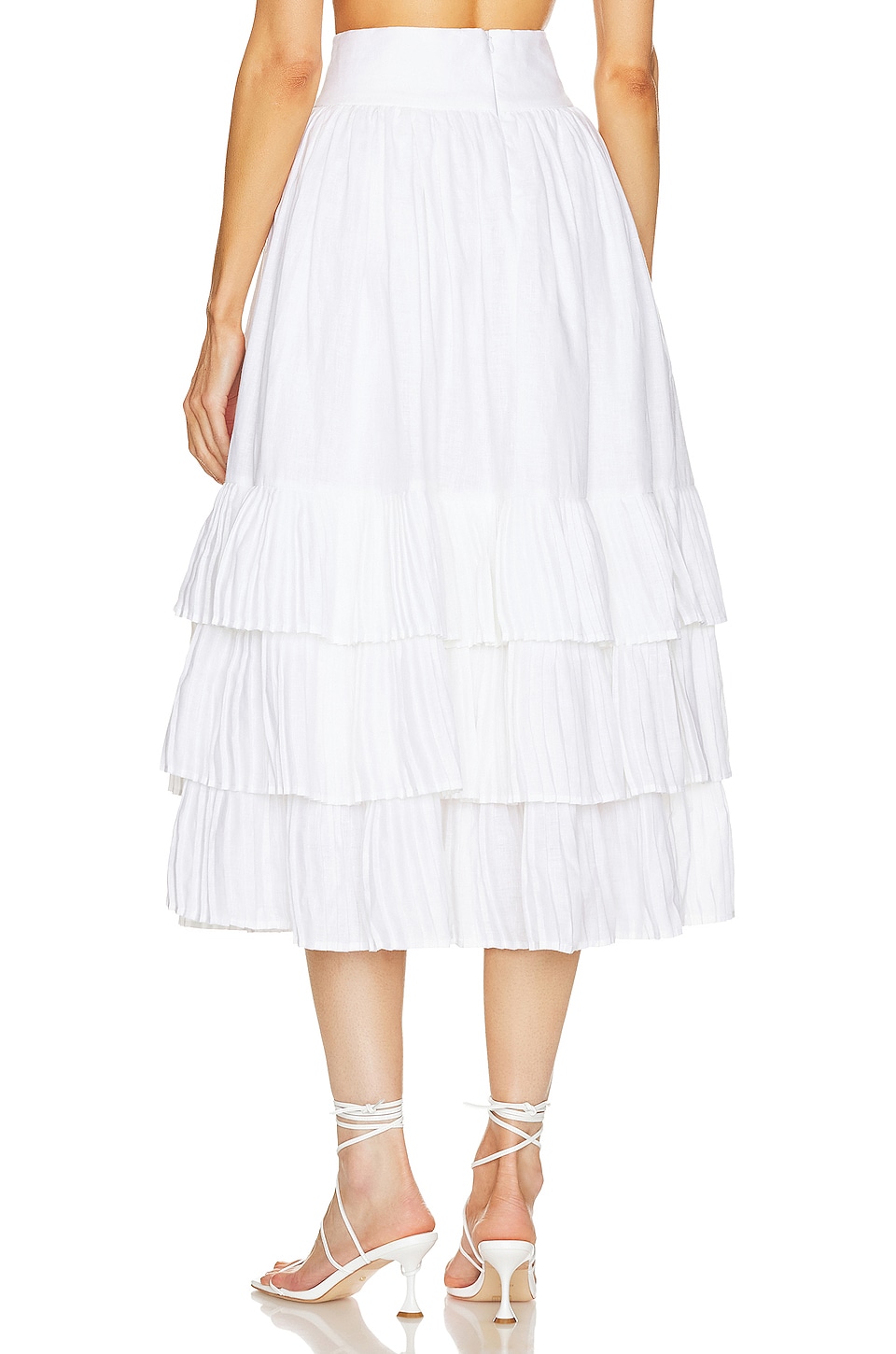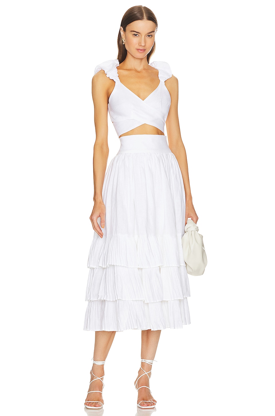 100% linen Made in Colombia Dry clean only Partially lined Hidden back zipper closure Lightweight linen fabric with tiered pleated skirt Item not sold as a set Skirt measures approx 91 cm in length Revolve Style No. TFEM-WQ1 Manufacturer Style No. 23SPK02 |