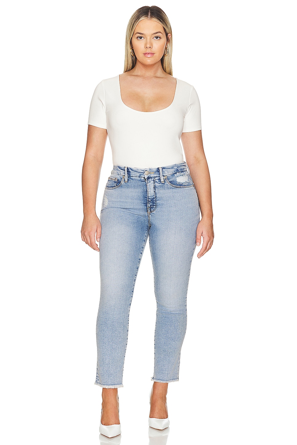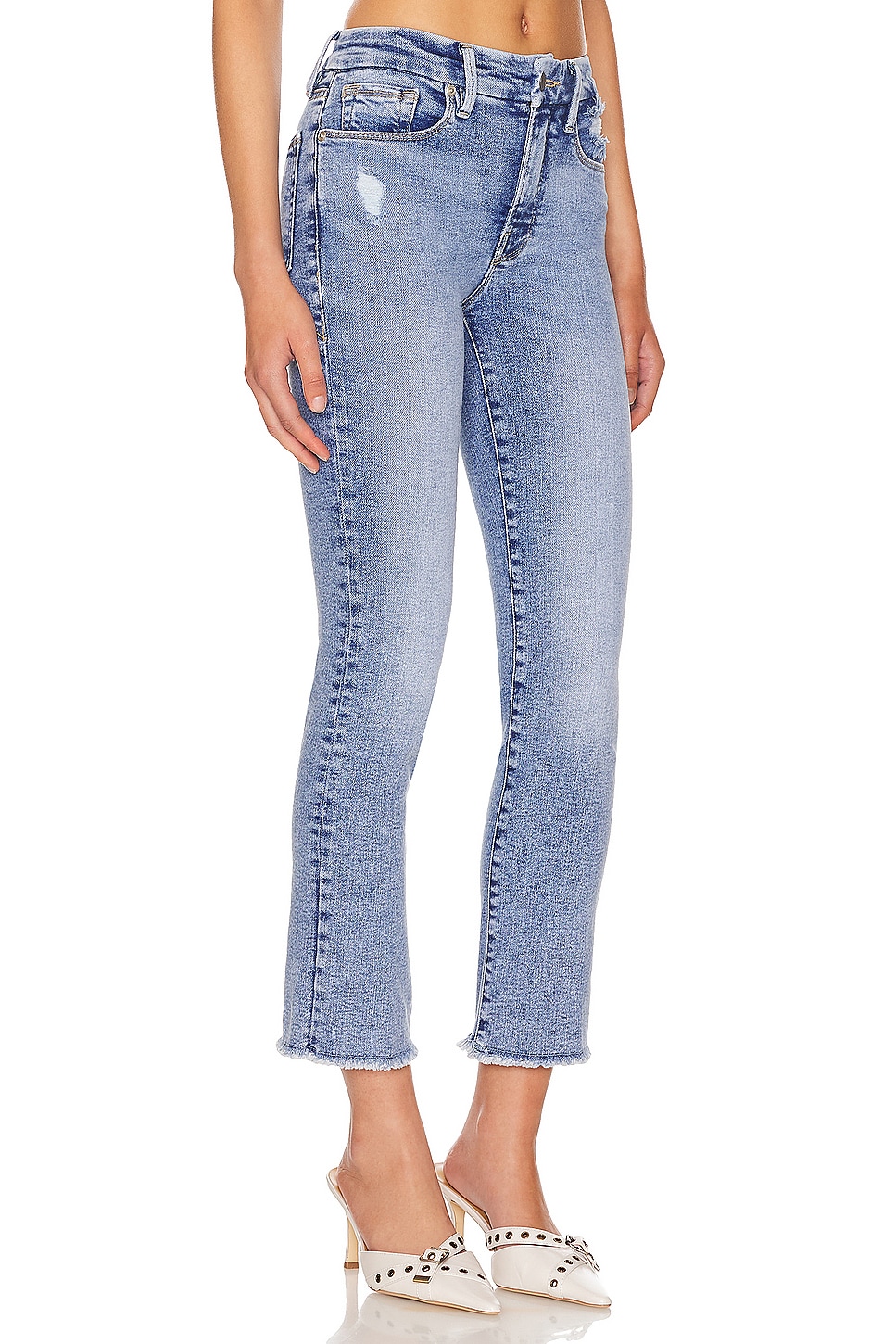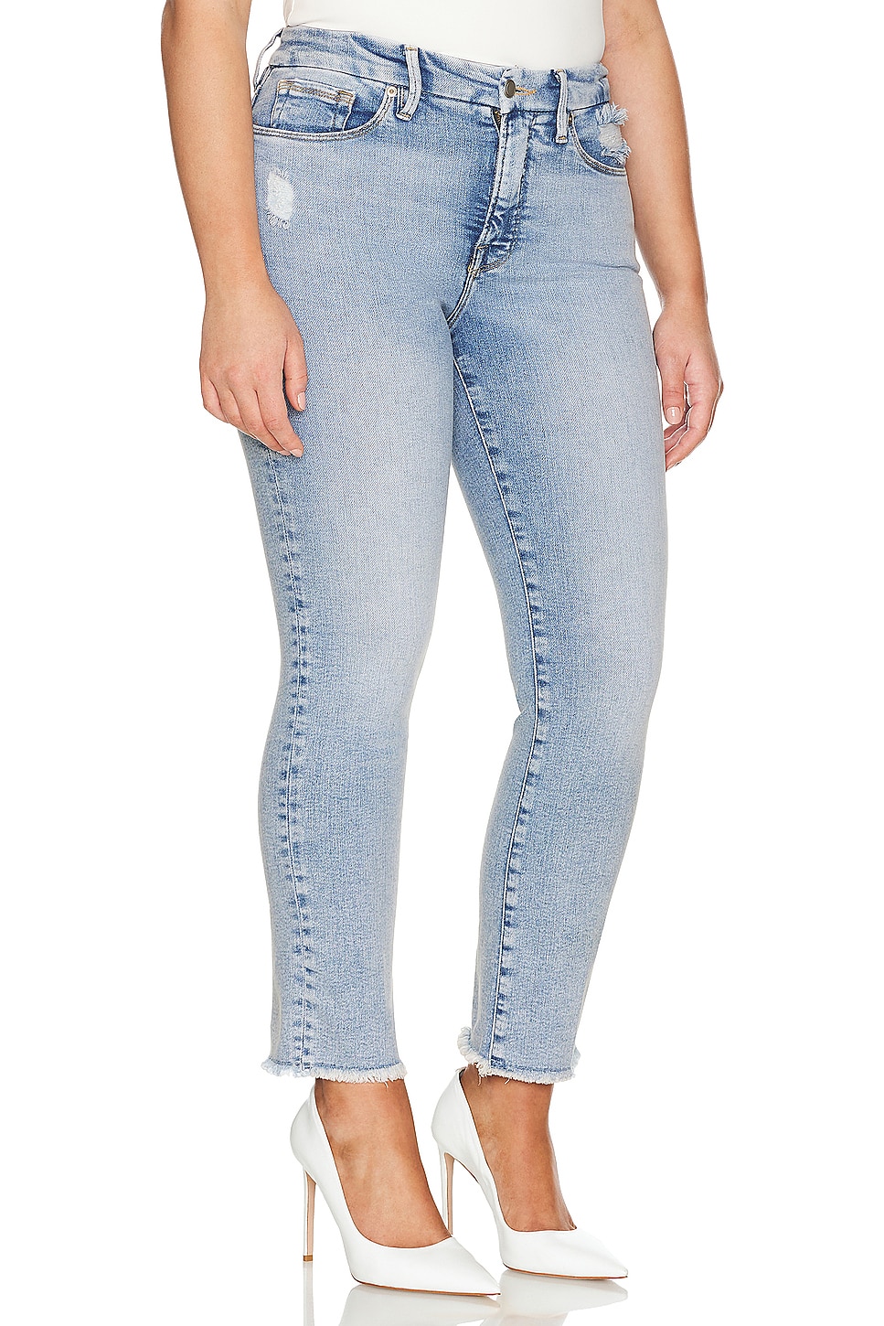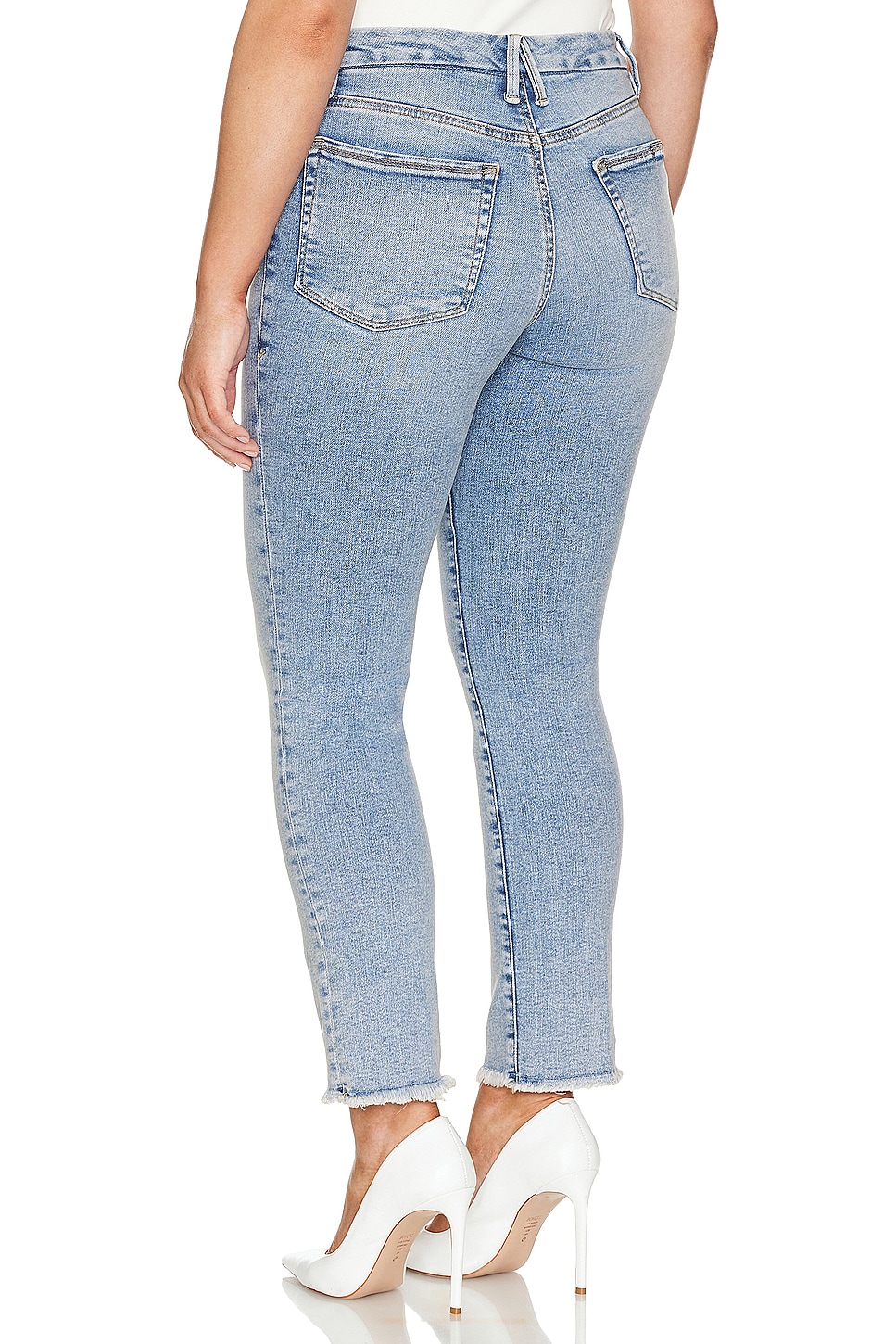 94% cotton, 4% elasterell, 2% elastane Made in Egypt Machine wash Zip fly with button closure 5-pocket styling Distressed pocket detail Slightly stretchy denim with frayed hem 34 cm at the knee narrows to 33 cm at the leg opening Revolve Style No. GAME-WJ137 Manufacturer Style No. GLS900T Good American is made by women, for women. All bodies. All Sizes. No compromises. In 2016, entrepreneurs Emma Grede and Khloe Kardashian launched their now-iconic denim label with the intention of redefining contemporary fashion through innovative and inclusive designs. With curves as their cause, Good American offers eco-friendly quality and style in every size, empowering women to celebrate their bodies with sexy confidence. |