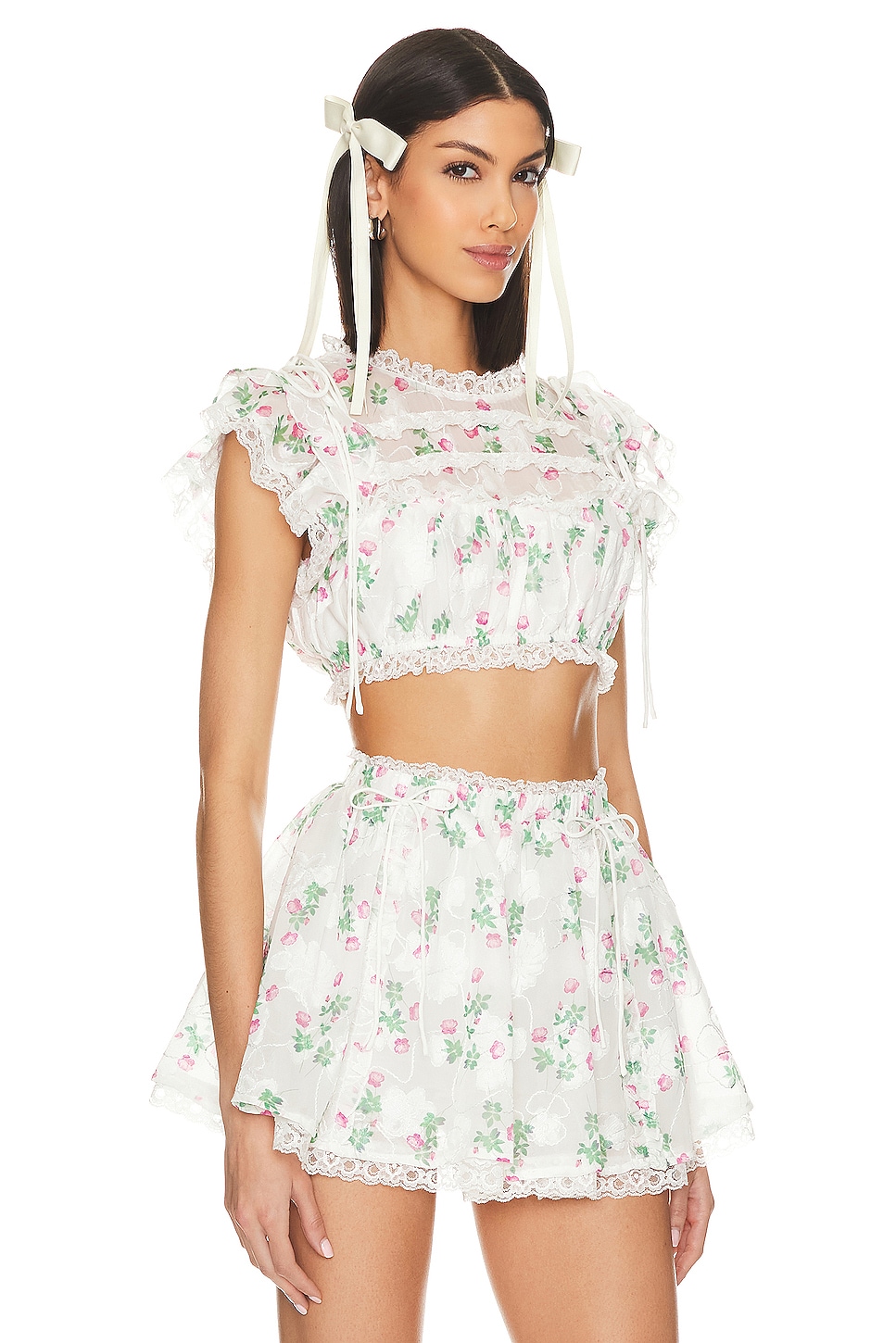 97% cotton, 3% spandex Made in China Dry clean only Back button loop closures Elastic underband Flutter sleeves Tulle fabric with lace trim Item not sold as a set Revolve Style No. FORL-WS599 Manufacturer Style No. CT2100-SP24 Derived from those sun-soaked Lemonade Stand Days designers and owners, Gillian Mahin and Laura Hall are the masterminds behind the line For Love & Lemons. Born in Wyoming, finding their style niche in Australia and now based in Los Angeles, the collection is anything but conventional-rebelling against the standards of modern society. The line taunts with intrigue as a clash of colors and patterns are evoked by chic separates and devious dresses. Where the modern gypsy is punk, For Love & Lemons is a brand to relate to, for that girl that doesn't follow trends, she makes them. |