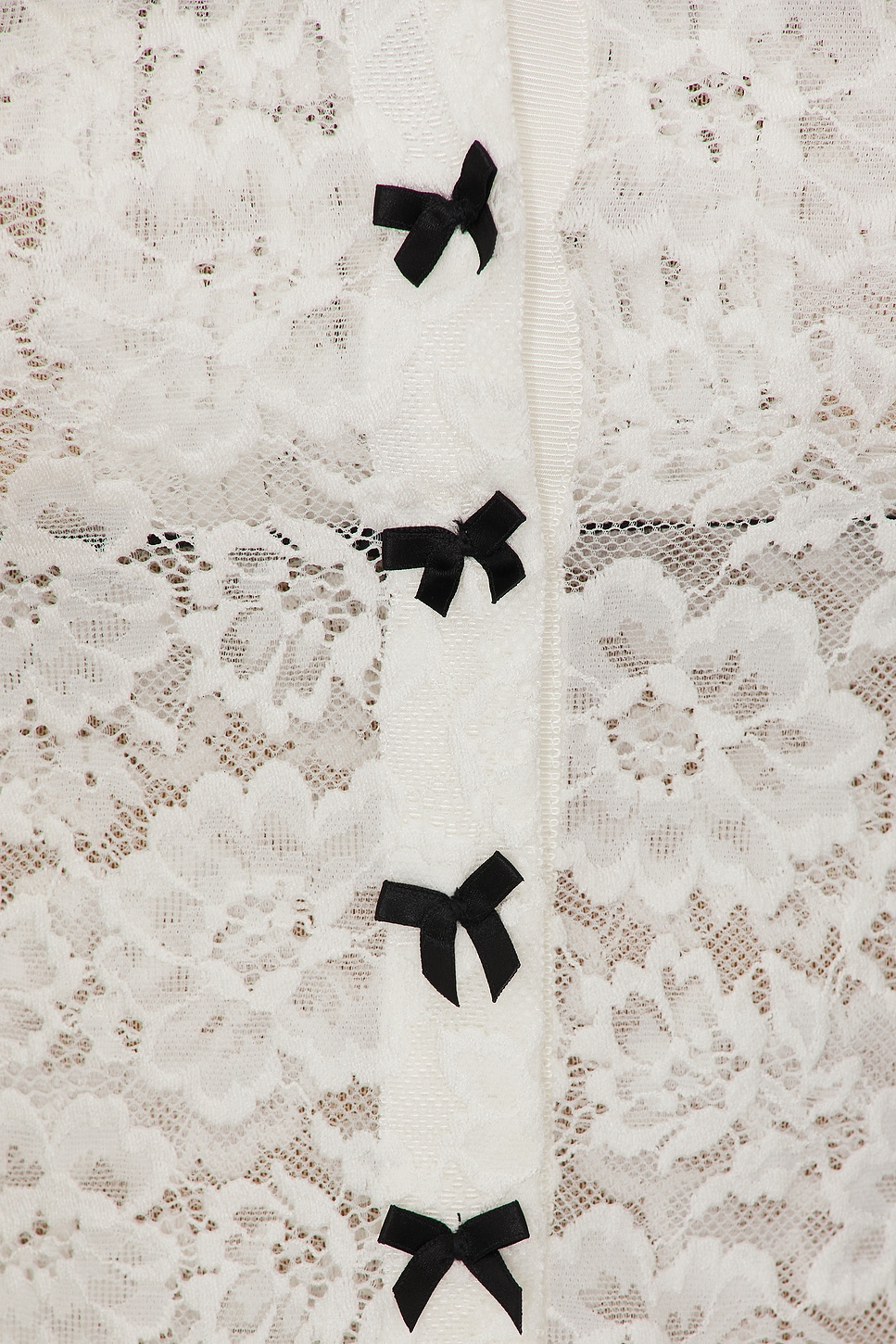 90% nylon, 10% elastane Made in China Hand wash Front button snap closure Lace fabric with bow accent Garment is intentionally sheer, undergarments will show through Please note camisole is not included and sold separately Revolve Style No. MALR-WS910 Manufacturer Style No. ACS2677 F24 Majorelle is a romantic escape driven by a sense of wanderlust and effortless feminine appeal. Based in Los Angeles, the label is girly, flirty, vintage and romantic, perfectly blending elegant dressing for the luxe dreamer who loves to travel the world. |