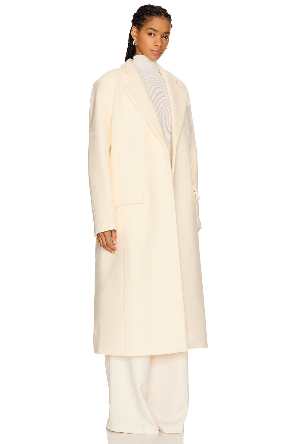 Self: 100% wool Made in China Dry clean only Open front Front faux flap pockets Heavyweight twill fabric with padded shoulders and notched lapel collar Revolve Style No. SRUE-WO11 Manufacturer Style No. S424JS576 |