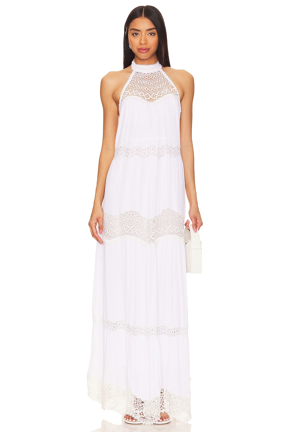 Self: 100% viscose Made in India Dry clean only Fully lined Halterneck styling with button closures Jersey fabric with lace embroidered trims Revolve Style No. TULA-WD1545 Manufacturer Style No. ACD2838 S24 Tularosa, the new LA-based label, is a refined vintage-inspired collection of romantic dresses, textural jackets, and embroidered tops designed for the wild at heart. |