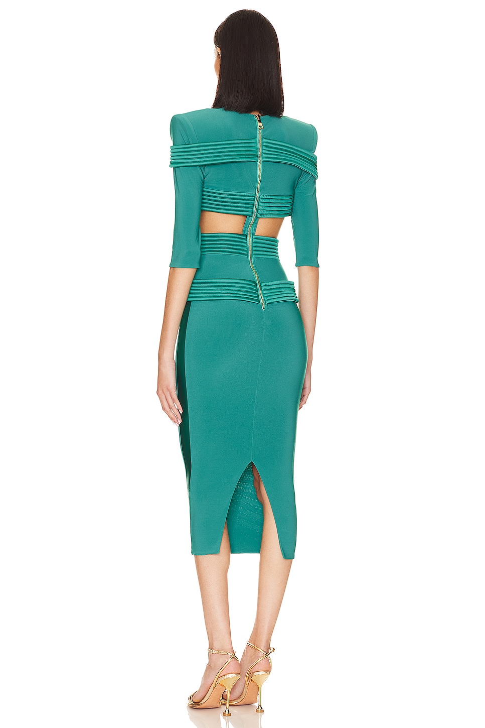92% polyester, 8% spandex Made in China Hand wash Partially lined Exposed back zipper closure Padded shoulders Side and back cut-outs Revolve Style No. ZHIR-WD269 Manufacturer Style No. 1009 Founded in 2012, Zhivago is an Australian brand that has built a reputation for its signature fusion of impeccably tailored ready-to-wear, avant-garde separates and high octane evening wear. Achieving PETA approved status in 2017, ZHIVAGO which is a 100% cruelty-free fashion house, was honored to be named PETA Australia's Most Animal-Friendly Label in 2018. |