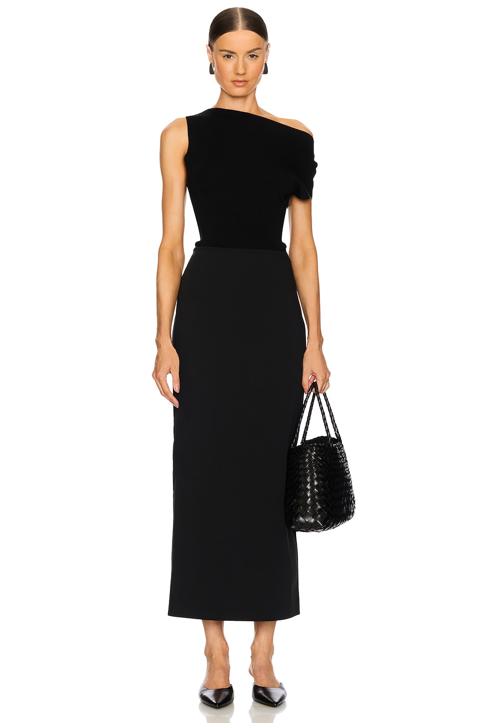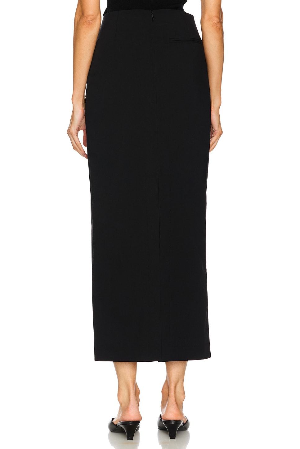 66% cotton, 31% recycled nylon, 3% spandex Made in China Hand wash Unlined Hidden back zipper closure Single back welt pocket Lightweight taffeta fabric Skirt measures approx 95 cm in length Revolve Style No. SAGN-WQ10 Manufacturer Style No. R25-807BLK |
