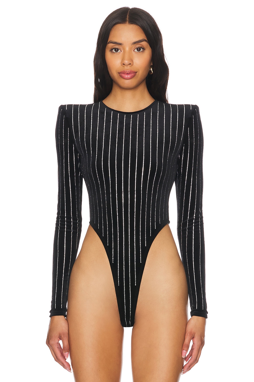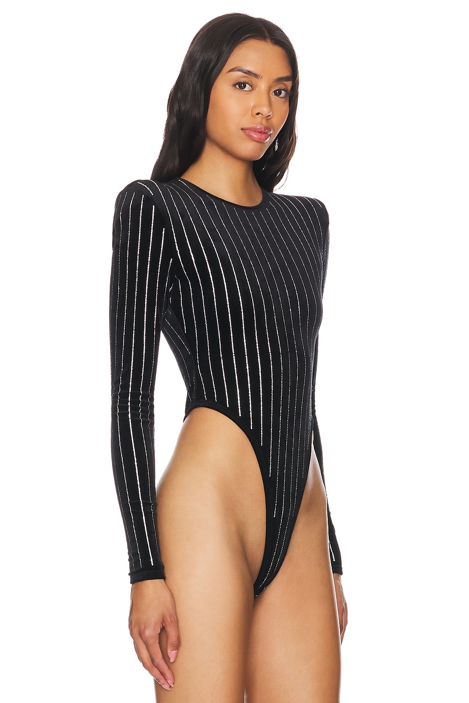 Alex Perry Crystal Velvet Long Sleeve Bodysuit
