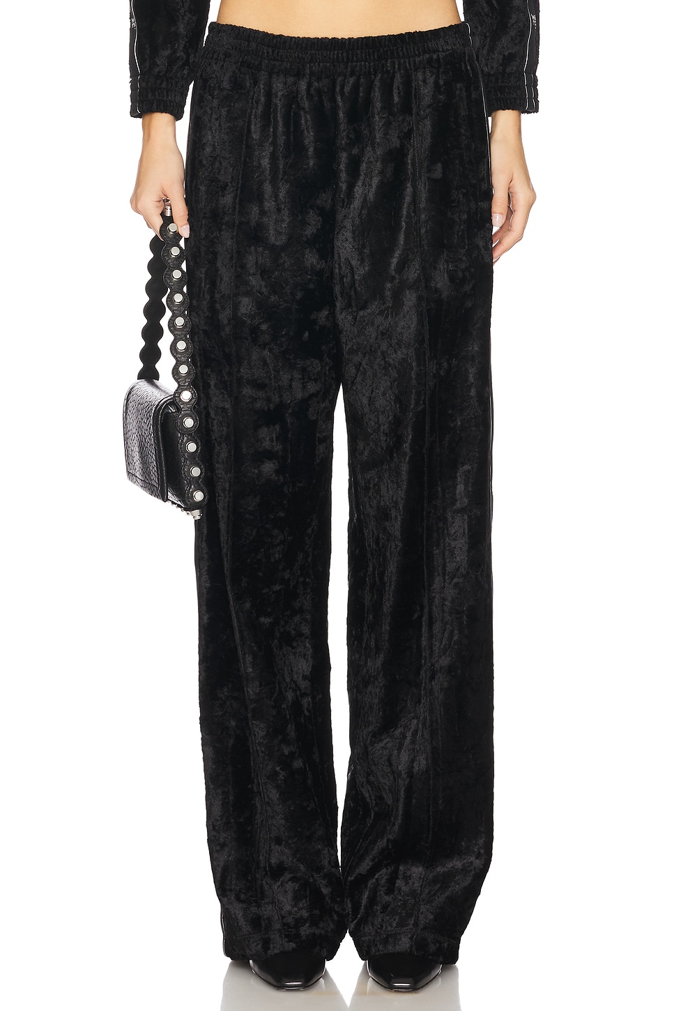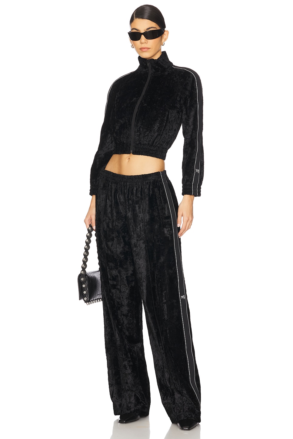 Self: 63% viscose, 27% cotton Made in China Dry clean only Pull-on styling with elastic waistband Side zipper pockets Singular back pouch pocket Crushed velour fabric 61 cm at the knee and narrows to 56 cm at the leg opening Revolve Style No. AWAR-WP41 Manufacturer Style No. 4WC1254415 Alexander Wang adds measured depth to his signature tough-sexy pieces using a sultry scarlet and feminine blush alongside his favorite black and grey hues. Expect luxe hybrids of your favorite outerwear as well as layers, chunky knits, and sleek satins in this collection. |