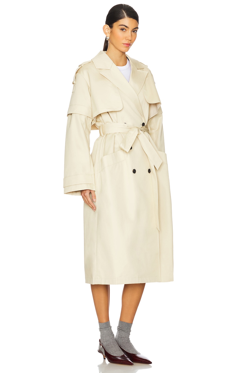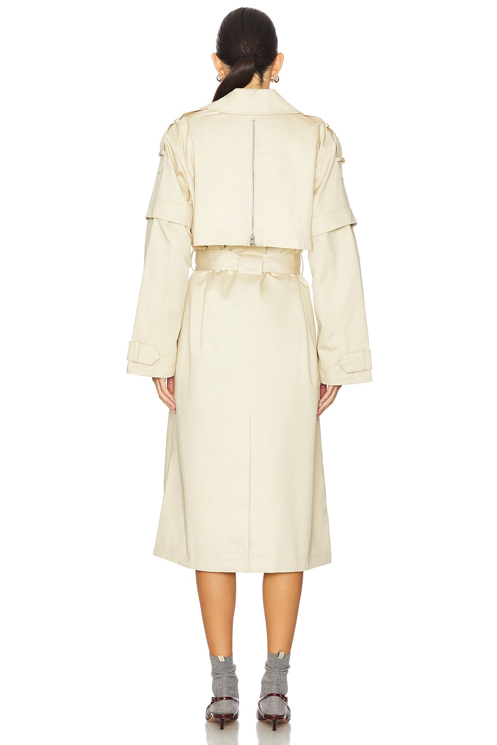 | Self: 100% cotton Made in China Dry clean Double breasted front button closure Dual slip pockets Detachable sleeves with snap buttons Shoulder epaulettes Twill fabric with detachable waist tie closure Revolve Style No. ALLR-WO205 Manufacturer Style No. W021OB Founded in East London in 1994, AllSaints breaks through the noise to offer something different. Cult leather jackets and signature biker boots - it's what they do. Prints you weren't expecting, and accessories you'll keep coming back for. It's about innovation, about turning your back on the trends and making your own rules, a uniform without uniformity. AllSaints is an attitude, wear it your way. |
