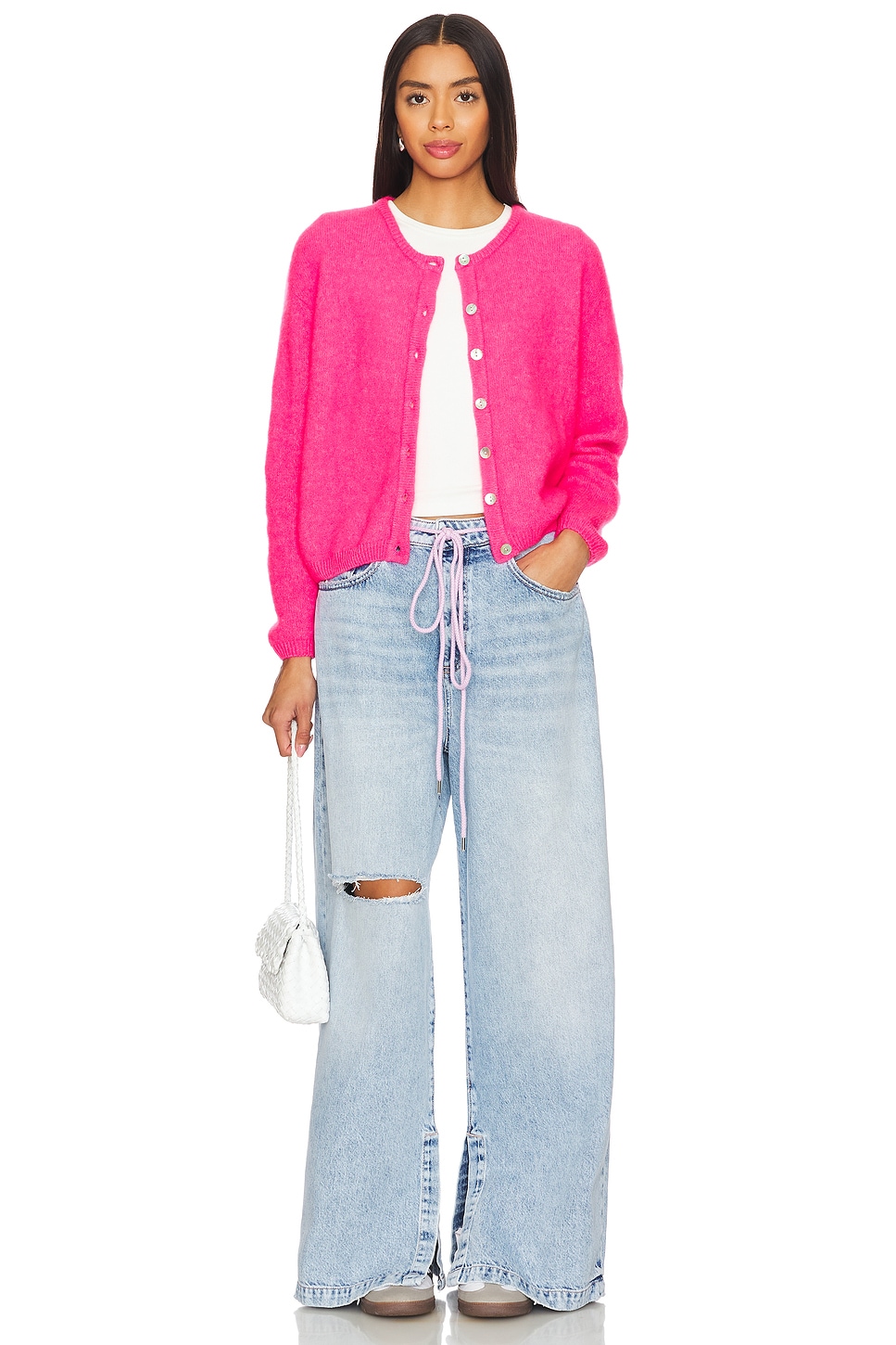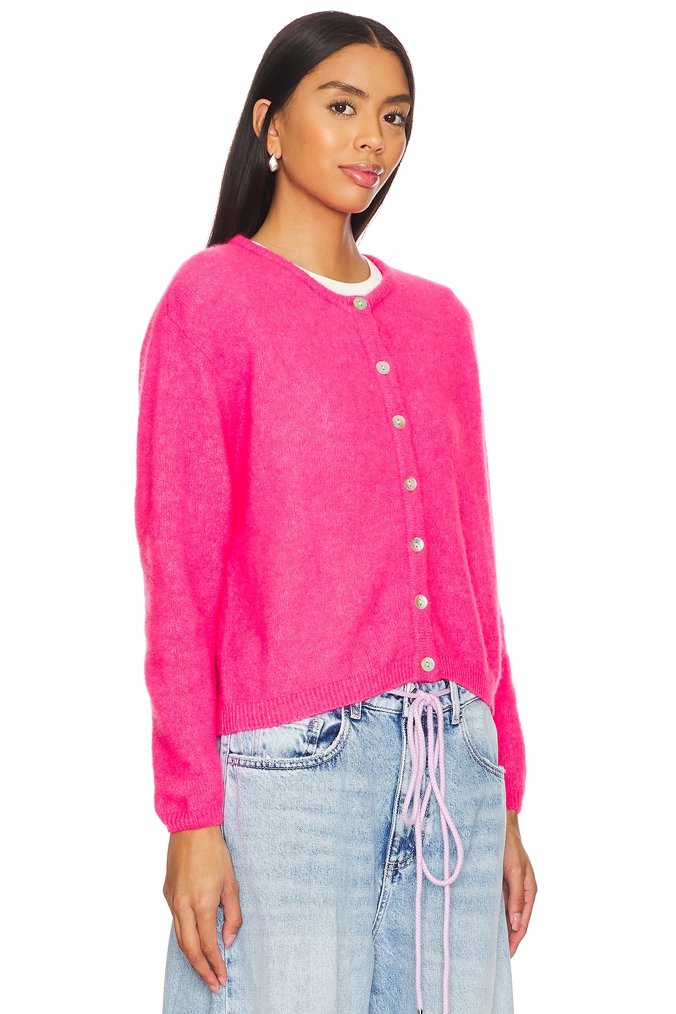 34% alpaca, 34% wool, 29% polyamide, 3% elastane Made in Bulgaria Hand wash Front button closure Fuzzy knit fabric Revolve Style No. AMER-WK194 Manufacturer Style No. VITO19EH24 Nothing is more American than a perfect fitting cotton tee. Get back to basics this summer with American Vintage casual clothing. |