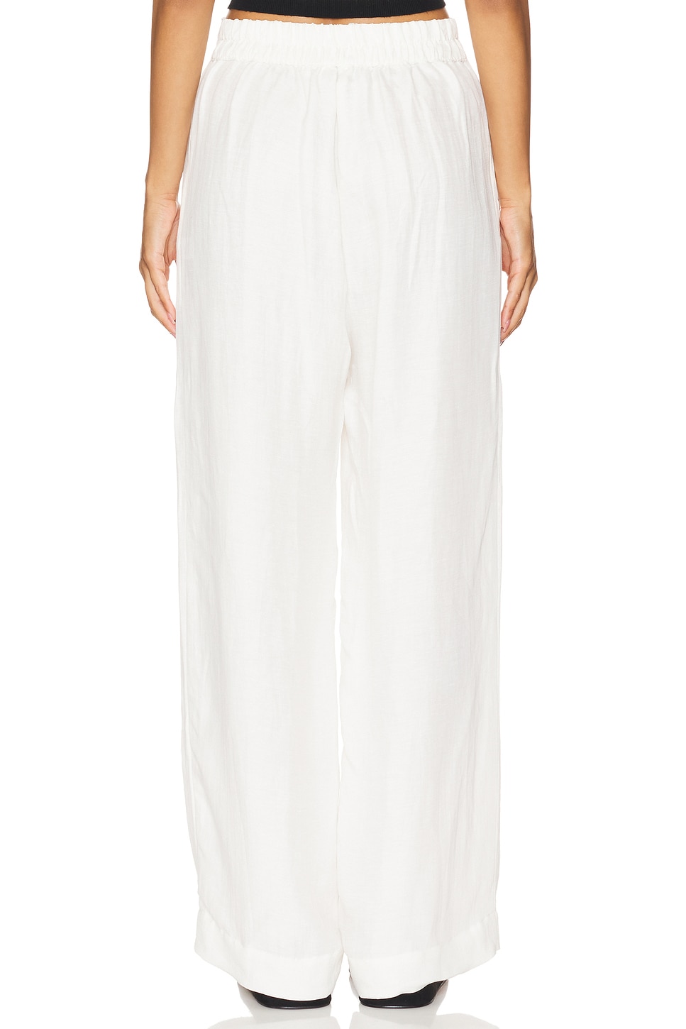 58% linen, 42% cupro Made in USA Machine wash Pull-on styling with elastic waistband Side seam pockets Linen fabric 58 cm at the knee and 58 cm at the leg opening Revolve Style No. AMOS-WP1 Manufacturer Style No. ANE-KEAT-LCU |