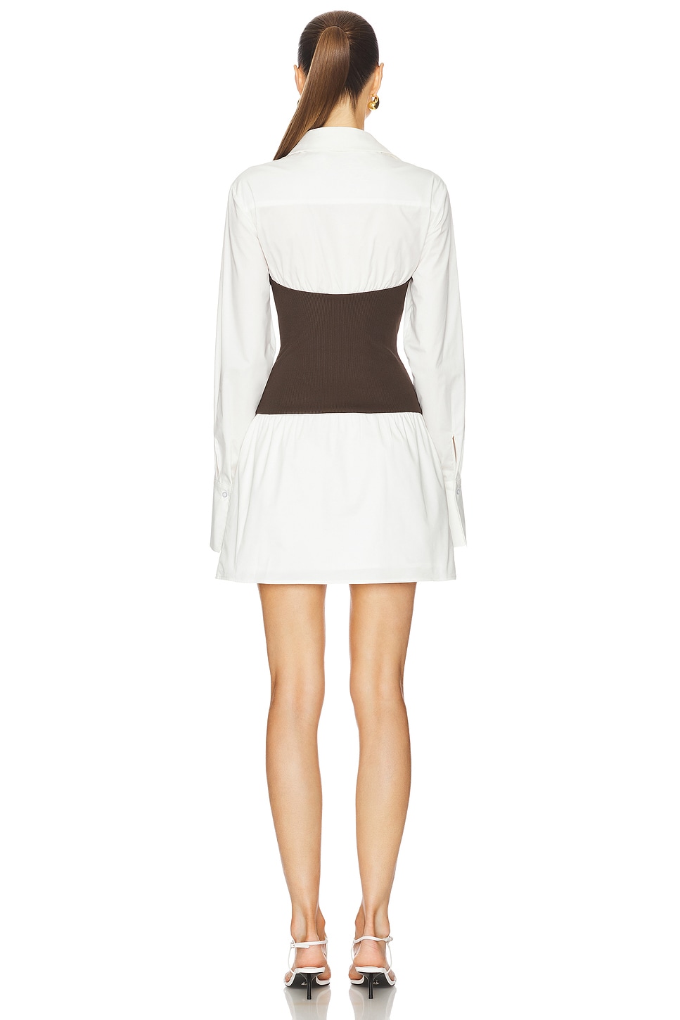 Self: 53% cotton, 40% nylon, 7% spandex Made in China Hand wash Fully lined Hidden partial side zipper Buttoned cuffs Poplin fabric and rib jersey bodice Revolve Style No. AUAR-WD19 Manufacturer Style No. 39.71.SW/DCC |