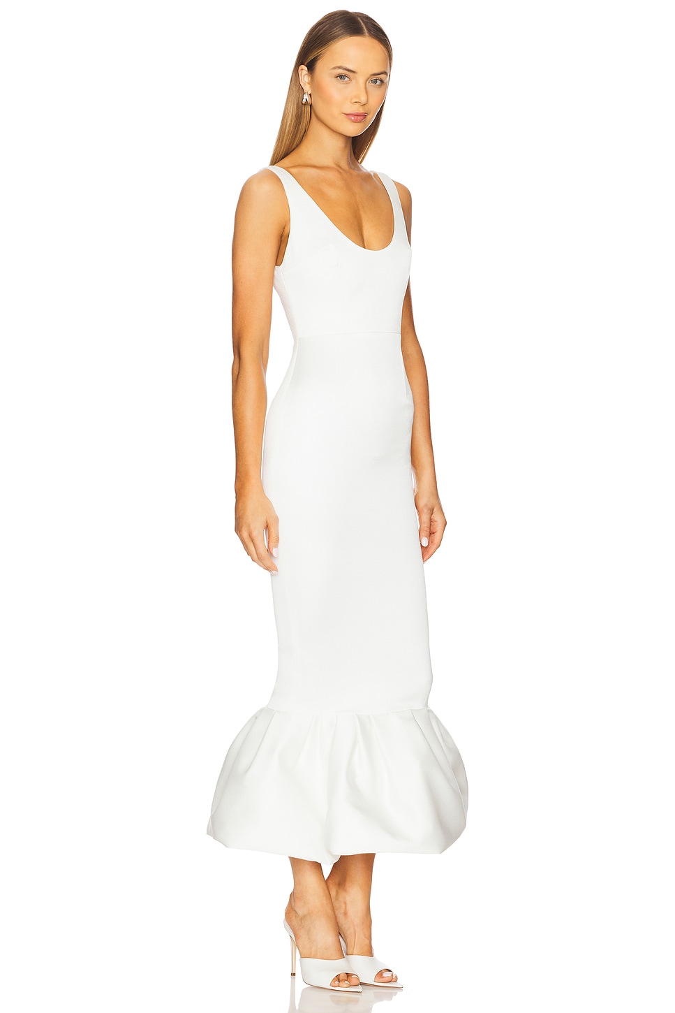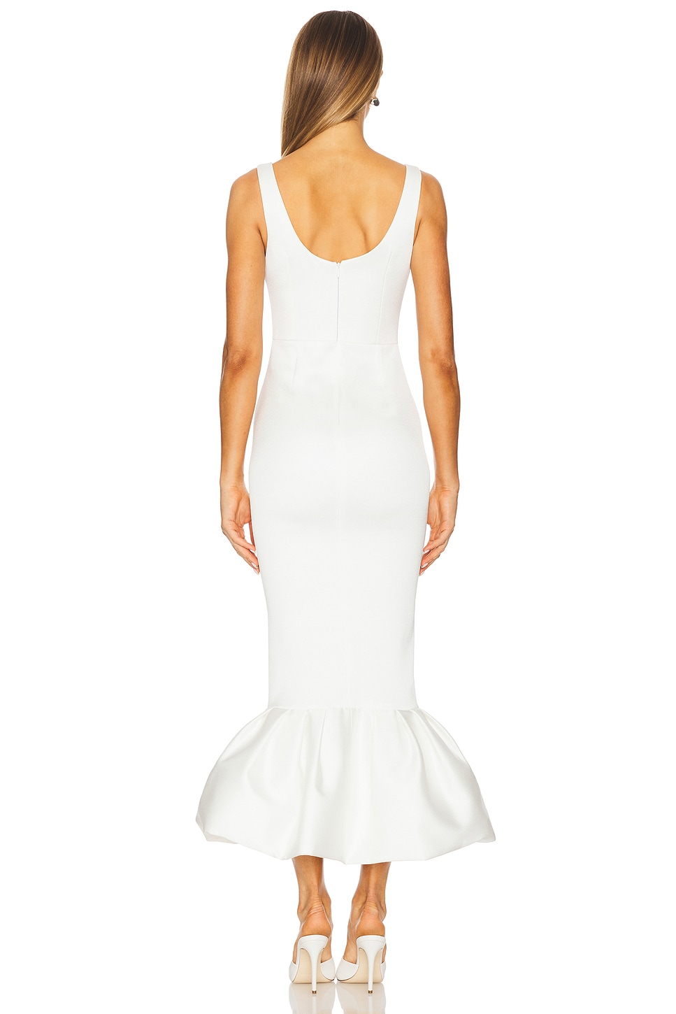 100% polyester Made in Turkey Dry clean only Unlined Hidden back zipper closure Midweight satin fabric with heavyweight bubble hem Scoop neckline and back Revolve Style No. NARR-WD112 Manufacturer Style No. S25_NA00202950634 |