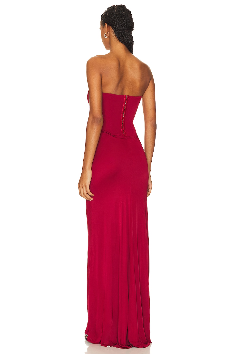 80% viscose, 20% silk Made in China Dry clean only Unlined Hidden back hook and eye closure Boned bodice Lightweight slinky jersey fabric Neckline to hem measures approx 140 cm in length Revolve Style No. ATER-WD34 Manufacturer Style No. A23Q21094 |