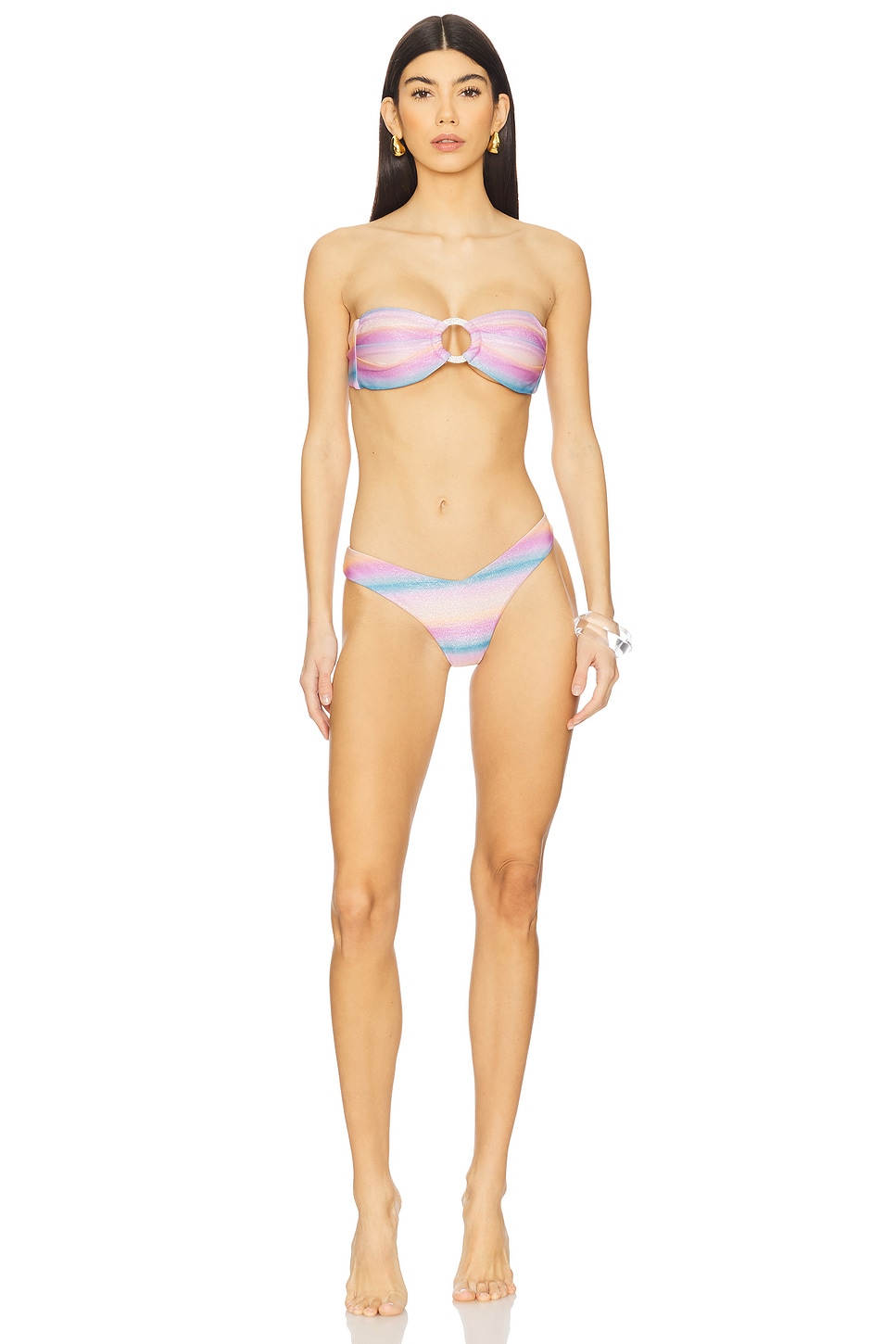 64% polyester, 16% metallic fibers, 12% polyamide, 8% elastane Made in China Hand wash Pull-on styling Lightweight metallic swimwear fabric Item not sold as a set Revolve Style No. BEAC-WX675 Manufacturer Style No. B2500B4 Beach Bunny swim separates offer a variety of mix-and-match styles for a unique, beach ready look. Lace, chain, and ruching details combined with comfy fabrics make for an undeniably flirty, figure flattering look. |