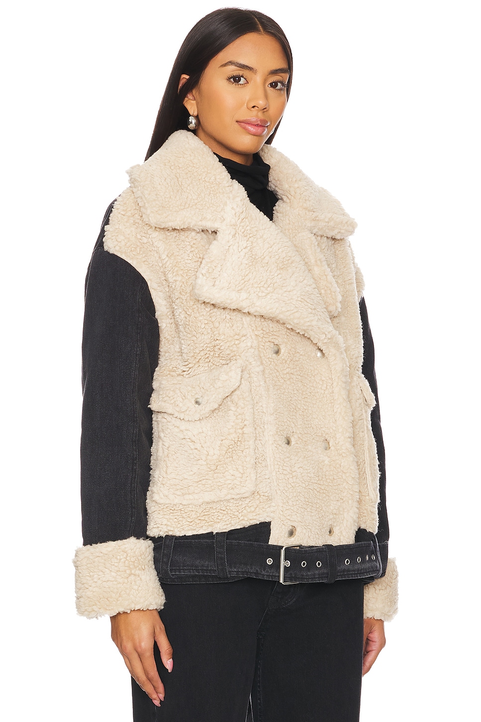 Self 1: 70% polyester, 30% wool Made in China Machine wash Double-breasted with snap button closure Front snap pockets Faux fur front bodice and cuffs with contrast denim panel Revolve Style No. BLAN-WO416 Manufacturer Style No. 02WJ5194 Since exploding onto the scene in 2007 with the signature Studded Skinny Classique jeans, [BLANKNYC] has been creating approachable clothing in obsession-worthy fits, fabrics and design. The Manhattan-born brand couples aggressively modern silhouettes with the integrity of premium quality: a mash-up of stretch denim, vegan leather, plush knits and industrial hardware transform minimalist basics into runway relevance. |