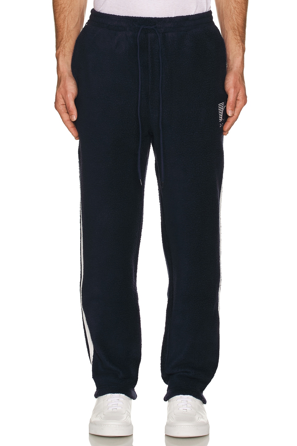 100% polyester Made in China Machine wash Drawstring closure 48 cm at the knee narrows to 41 cm at the leg opening Revolve Style No. BOUR-MP15 Manufacturer Style No. NAVY GRID JOGGERS |