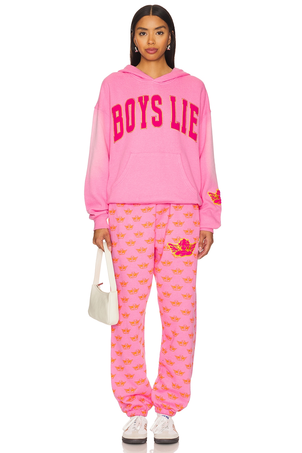 66% cotton, 21% rayon, 13% polyester Made in China Machine wash Elastic waistband with interior drawstring Front logo Logo print fabric with fleece lining Item not sold as set 53 cm at the knee narrows to 25 cm at the leg opening Revolve Style No. BOYR-WP135 Manufacturer Style No. KSNYPUPPIN In 2007, Boys Lie founders Tori Robinson and Leah O'Malley attended different high schools, circled different cliques, and had very different interests - little did they know that they were fated to become best friends and co-founders. In the summer of 2016, Tori and Leah found themselves going through the same thing: a big break up with a serious boyfriend. Their exes just happened to be best friends. The girls formed an unparalleled bond, through comfort and support, and discovered they complemented each other. That singular experience inspired a mantra that turned into a concept for their current business venture. Something incredible can emerge from excruciating pain: a tiny push in the right direction, encouragement from an unexpected source, a compliment from a stranger - or a serendipitous friendship - can change everything. Boys Lie was born of heartbreak and transformed through friendship. While going through their own breakups, Tori and Leah inspired one another to overcome trauma, trust issues, and self-doubt. |