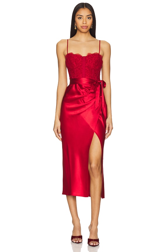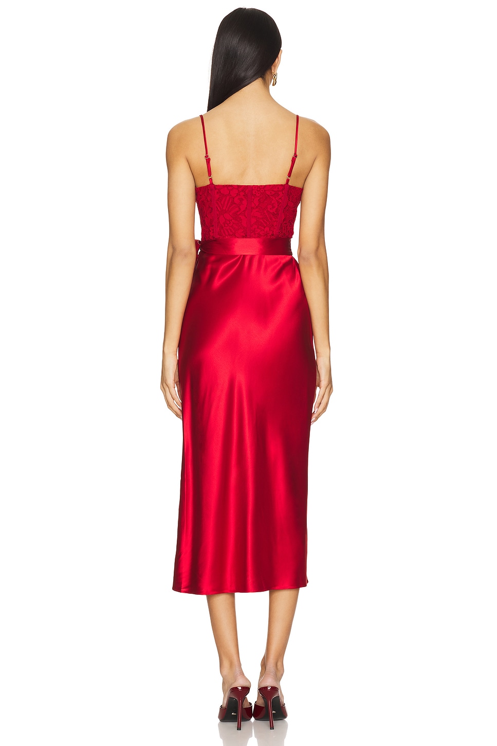 Self 1: 73% acetate, 27% polyester Made in China Dry clean only Partially lined at bust Hidden side zip closure Adjustable shoulder straps and boned bodice Midweight satin skirt with lace bodice and adjustable tie closure Revolve Style No. CAMN-WD128 Manufacturer Style No. S24-D10 The search for the perfect silk camisole is over. Cami NYC designs the perfect staple piece to compliment your wardrobe and refine your everyday style with a collection of camisoles in a variety of distinct styles and range of colors. Each and every camisole is classic, feminine and versatile. |