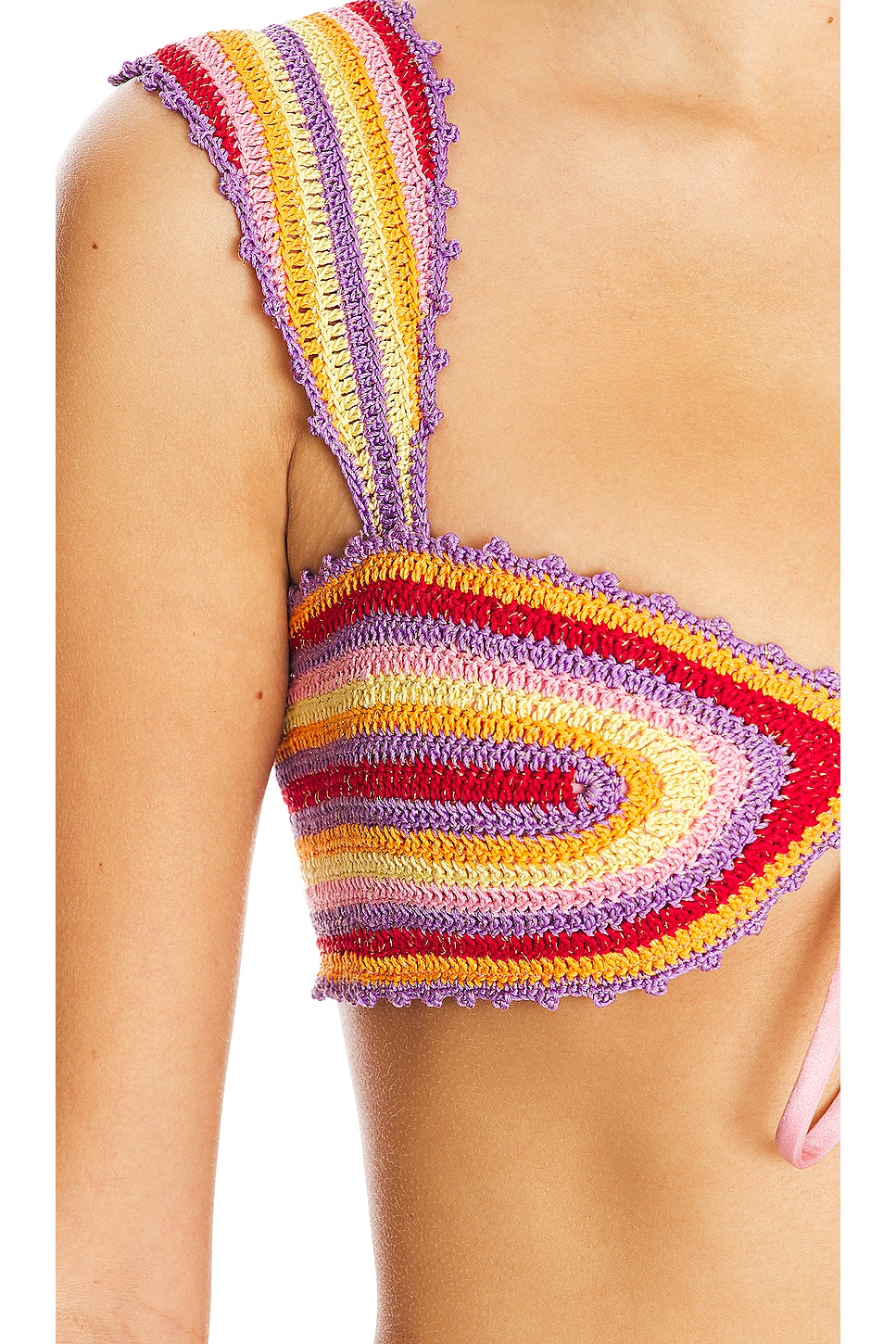 Self: 80% polyester, 20% elastane Made in Peru Hand wash Detachable cup padding Front tie closure Crochet fabric with metallic threading Item not sold as set Revolve Style No. CITT-WX3 Manufacturer Style No. C1410.1 |