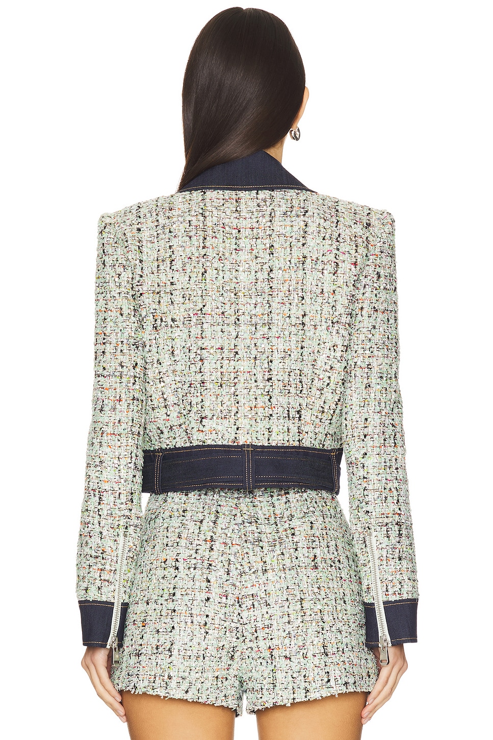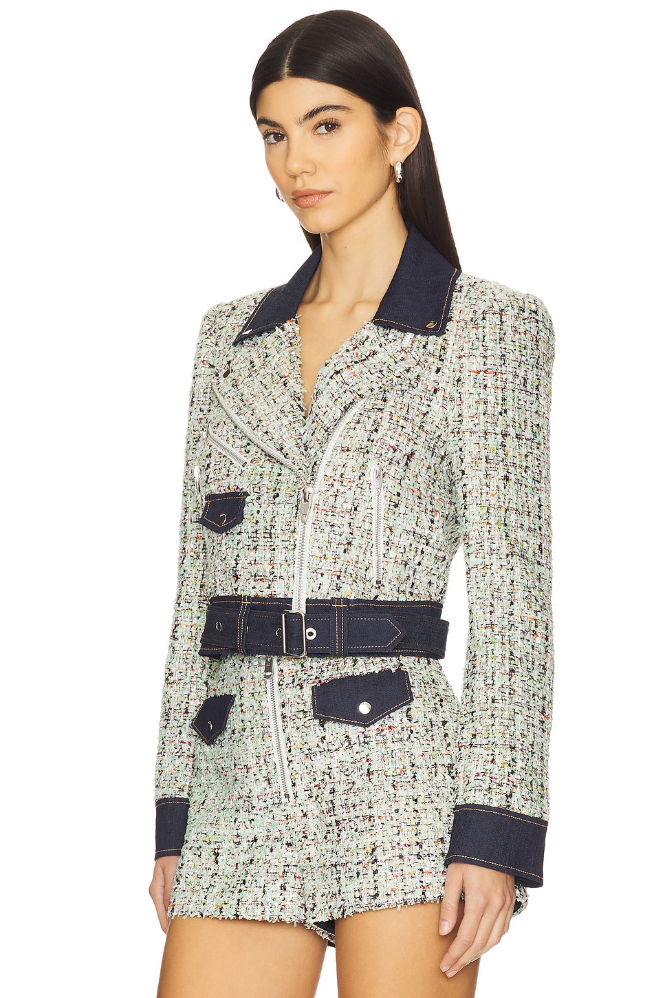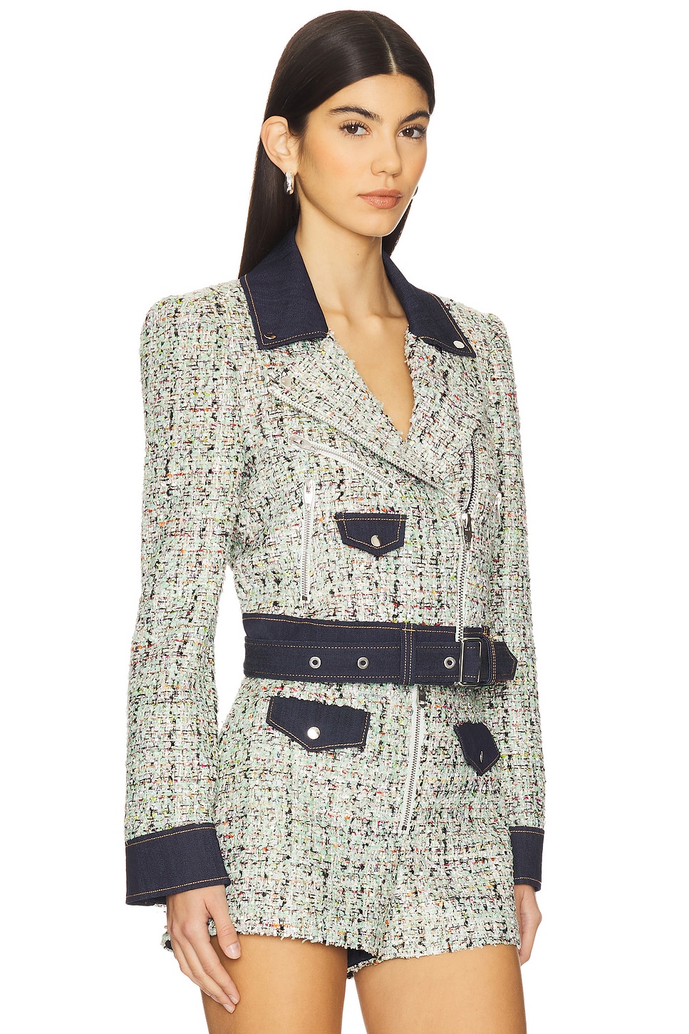 Self: 93% polyester, 4% acrylic, 3% metallic Made in China Dry clean only Front zip closure and optional belt with buckle closure Zip cuffs Midweight tweed fabric with metallic threading and padded shoulders Item not sold as set Revolve Style No. CINR-WO120 Manufacturer Style No. ZJ6128798Z Cinq Sept is the time between late afternoon and early evening when the streets are awash in the warm glow of the vanishing sun and anything is possible. This beautiful meaning is highlighted throughout the lines collection - they strive to find that balance between day and night and sophistication and ease. |