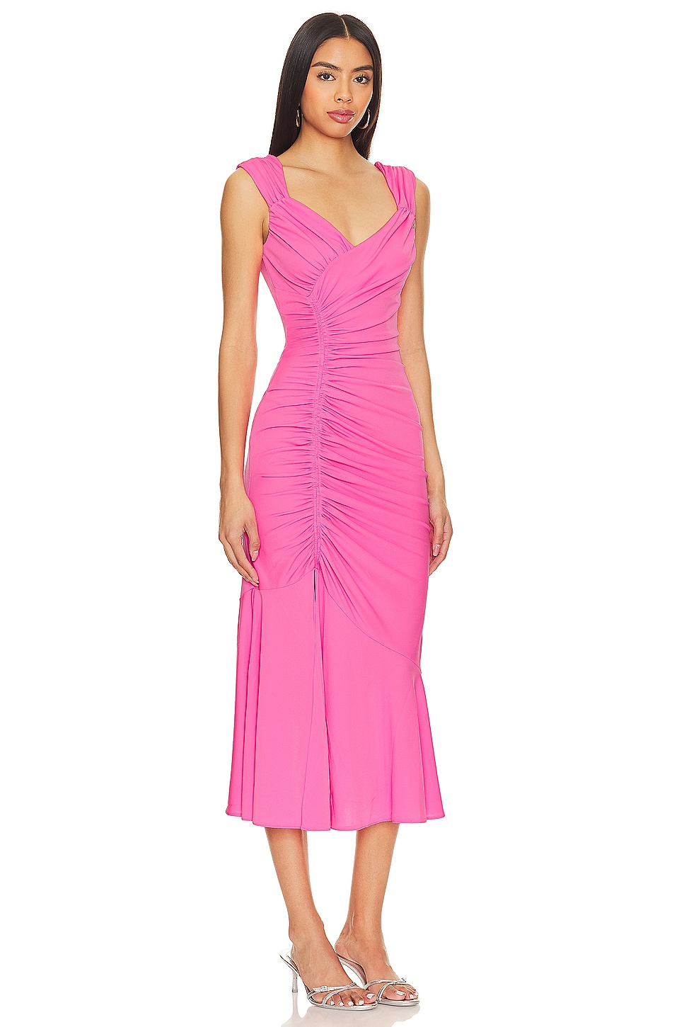 Self: 95% polyester, 5% spandex Made in China Machine wash Unlined Hidden back zipper closure Midweight ruched slinky jersey fabric Revolve Style No. CINR-WD365 Manufacturer Style No. ZD20572741Z Cinq Sept is the time between late afternoon and early evening when the streets are awash in the warm glow of the vanishing sun and anything is possible. This beautiful meaning is highlighted throughout the lines collection - they strive to find that balance between day and night and sophistication and ease. |