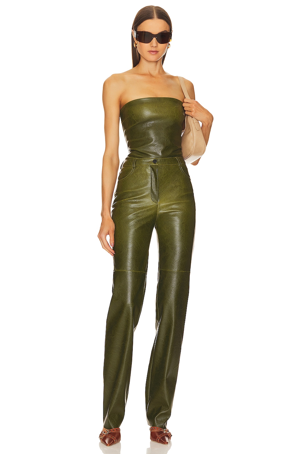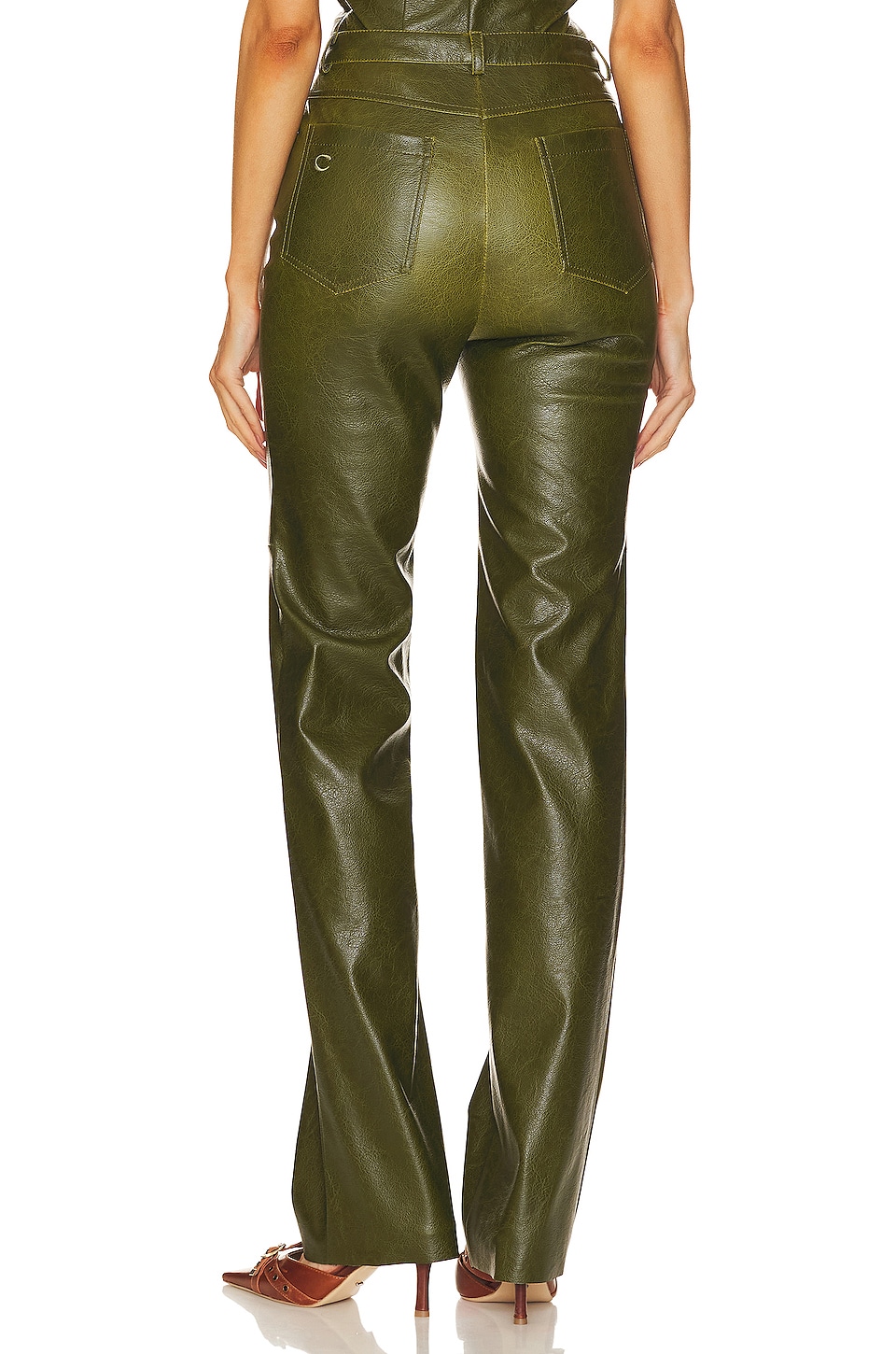 Self: 56% polyester recycled: 44% polyurethane Made in Ukraine Dry clean only Zip fly with button closure 4-pocket design Smooth faux leather fabric 36 cm at the knee and 36 cm at the leg opening Revolve Style No. CULR-WP4 Manufacturer Style No. PERITR |