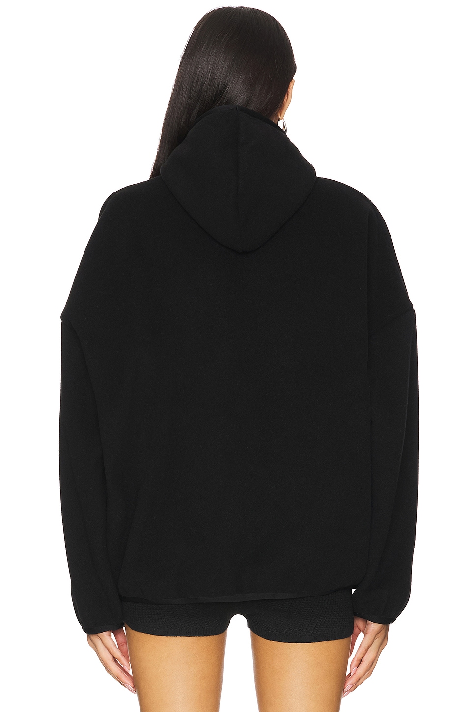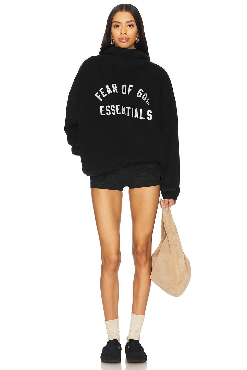90% polyester, 10% rayon Made in China Hand wash Pull-on styling Attached hood and front embroidered slogan Midweight jersey fabric with fleece lining Revolve Style No. FALF-MK40 Manufacturer Style No. 202HO246410F |