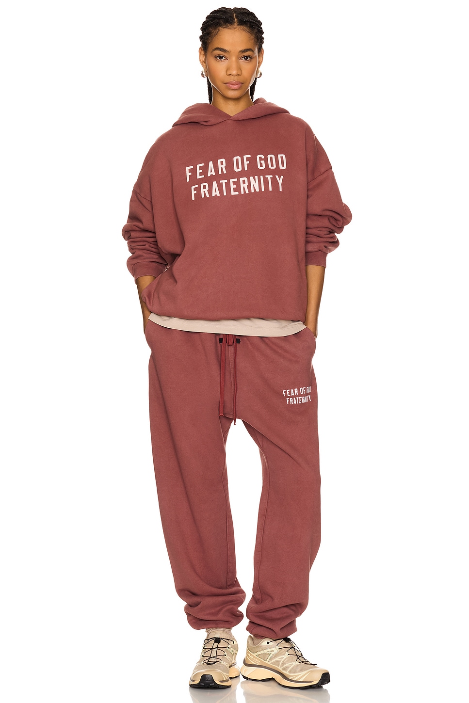 100% cotton Made in Vietnam Hand wash Drawstring closure Side seam pockets Logo detail at side Tonal Fear Of God leather label at fly Fleece lining Revolve Style No. FALF-MP12 Manufacturer Style No. 130BT244456F |
