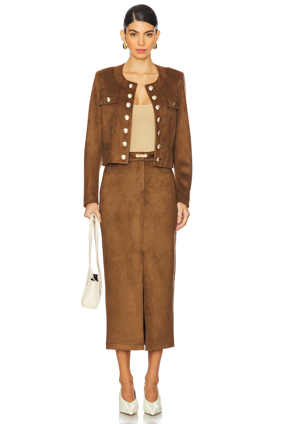 Self: 95% polyester, 5% elastane Made in China Dry clean only Unlined Zip fly with hook and bar closure 4-pocket design Faux suede fabric with front vent Skirt measures approx 86 cm in length Revolve Style No. GLOV-WQ46 Manufacturer Style No. K00233002 Founded in 2009, Generation Love clothing is comfortable, sexy, and sophisticated all wrapped into one. |