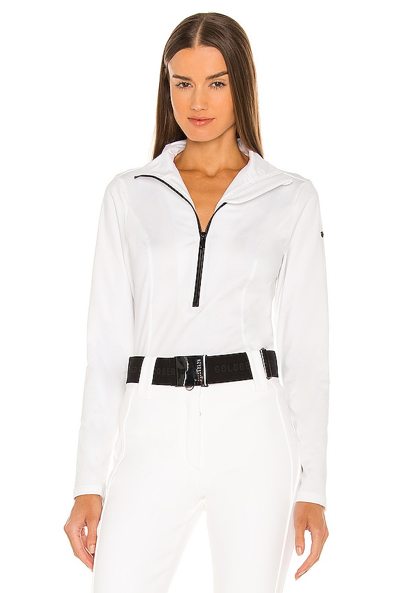 Poly blend Imported Partial front zipper closure Stretch jersey fabric Made in Romania Revolve Style No. GDBE-WS9 Manufacturer Style No. GB300020254 Founded in Amsterdam in 2009 by renowned sportswear designer Lieke van den Berg, and entrepreneurial retailer Sandra Peet, Goldbergh celebrates confidence and independence. With its focus on luxury, fun, and the perfect fitting skiwear, Goldbergh was an instant success on the slopes and on the catwalk. Goldbergh's signature style is fiercely feminine with a classic silhouette and surprising, head-turning fashion elements. The collection is designed to give women the freedom to move with confidence, whether they're conquering new heights in the snow or pushing past their limits in the gym. |