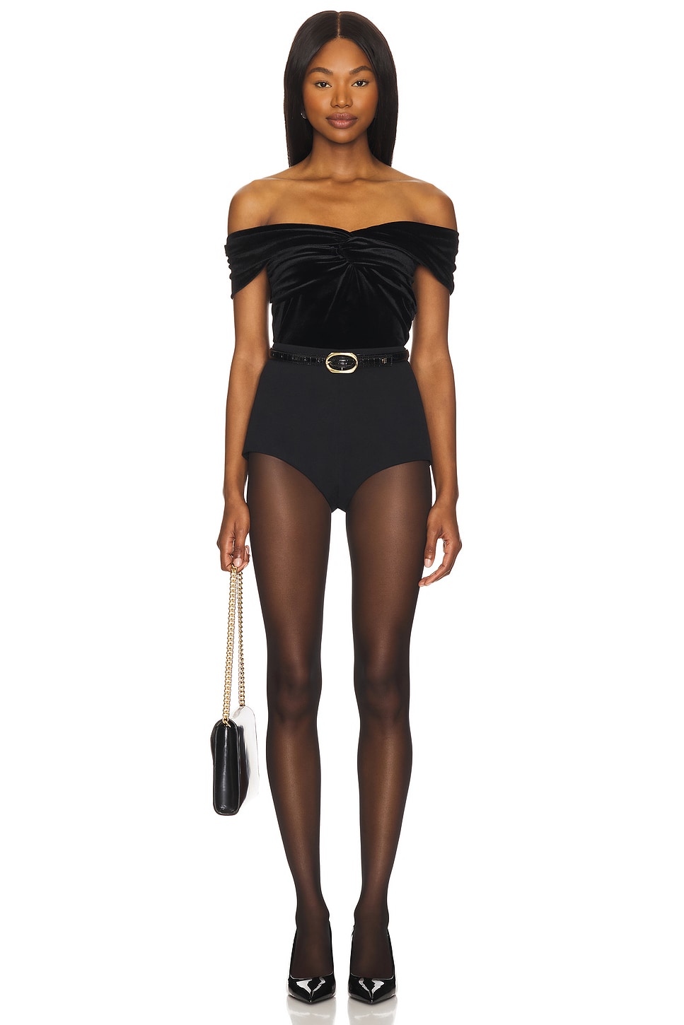 Good American Velvet Off Shoulder Top