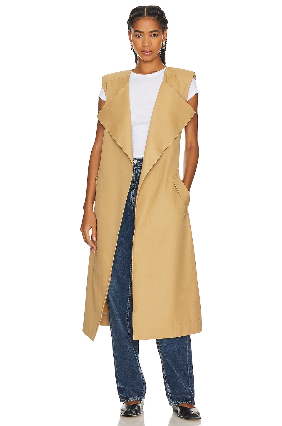 Self: 100% cotton Made in China Dry clean only Open front Shoulder epaulettes Detachable waist belt Convertible styling Pleated gabardine fabric Revolve Style No. GRLR-WO81 Manufacturer Style No. GROW65 F23 Introducing your new GRLFRND. Based in LA, GRLFRND Denim crafts pieces focused on fit and individuality, blending unique details with vintage silhouettes. The premium denim label reimagines everyday staples with a contemporary vision, drawing inspiration from enduring styles and comfort. Bold, versatile, and unexpected - a fresh approach to classic denim. Explore the collection featuring remarkable ready-to-wear pieces designed with premium qualities and directional silhouettes to perfectly complement the denim |