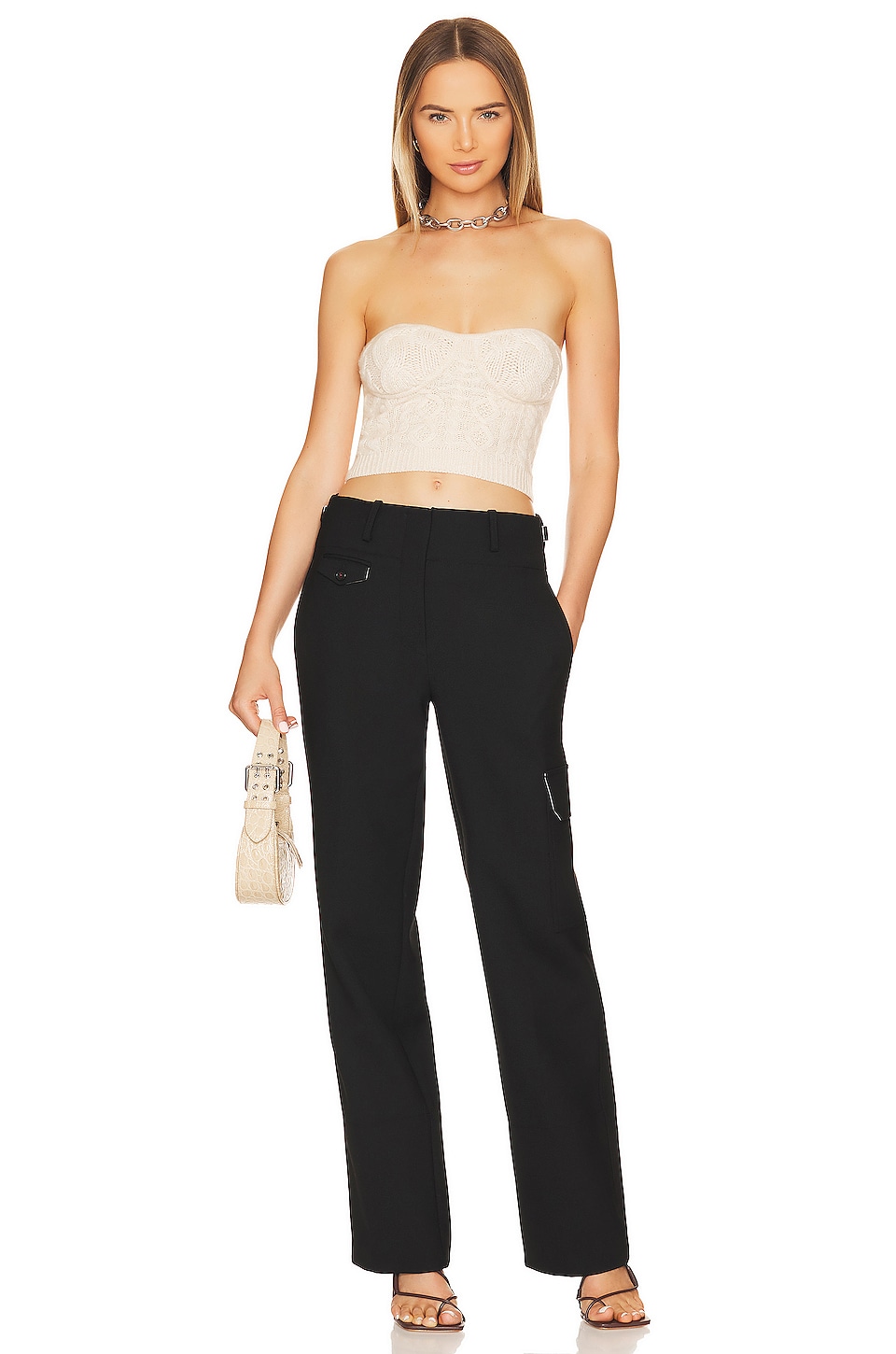 GUIZIO Cable Knit Bustier Strapless Top