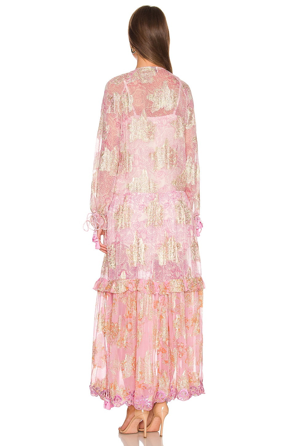 81.2% viscose, 18.8% metalized Made in India Dry clean only Detachable slip lining Partial front button closure Side seam slit Flowy georgette fabric with lurex threading throughout and ruffle trim and floral design Revolve Style No. BENE-WD212 Manufacturer Style No. HN-SIDRA-5003 Hemant & Nandita blends pop details with casual sophistication, depicting an extreme attention to detail. The designs are an exciting amalgam of prints and embroideries with balanced placements. Development of fresh and new prints with pops of color in the detail and exploring different surface techniques provides the right amount of experimentation and sophisticated elegance to the brand aesthetic. |