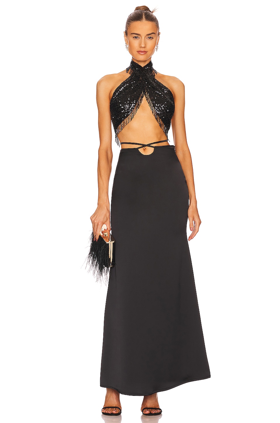 Self: 97% polyester Made in Turkey Dry clean only Crisscross front with lace-up back closure Completely embellished with sequins Beaded fringe detail Revolve Style No. ITMR-WS10 Manufacturer Style No. PFW220150005 |