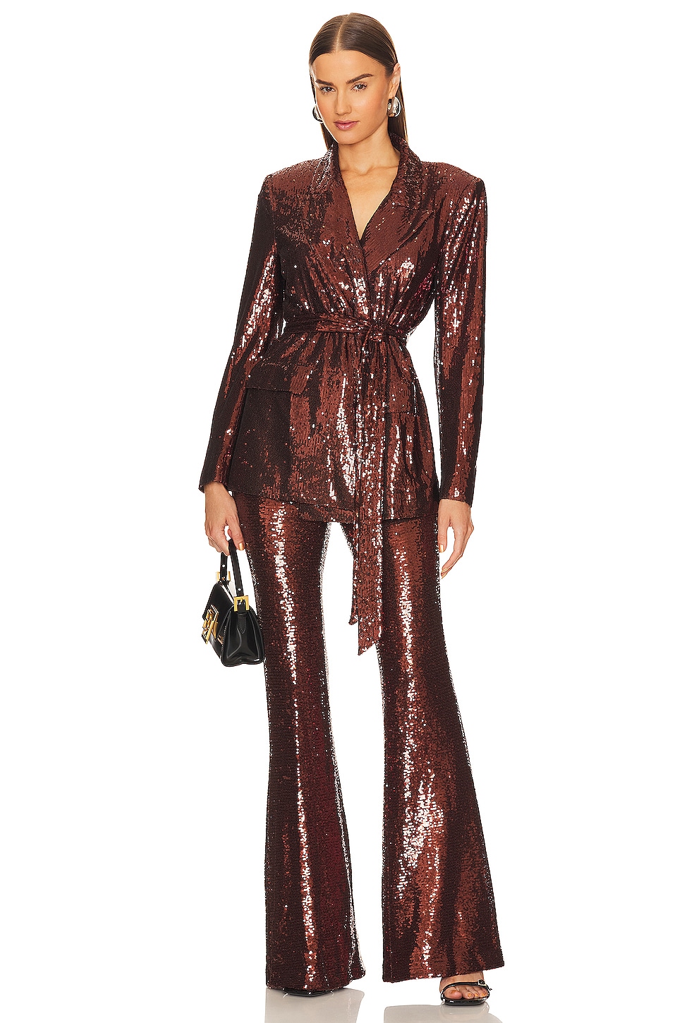 100% polyester Made in China Spot clean only Surplice style open front Sequin waist tie Padded shoulders Front flap pockets Fully sequined fabric Revolve Style No. LAGR-WO202 Manufacturer Style No. 1713BJS2 Launched in 2008 by designer Margaret Maldonado, L'AGENCE operates off of a simple concept: washed silks, Japanese and Italian fabrics. Over the years, Maldonado has designed dresses, tops, bottoms and knits from the finest fabrics with the most modern and appealing cuts. |