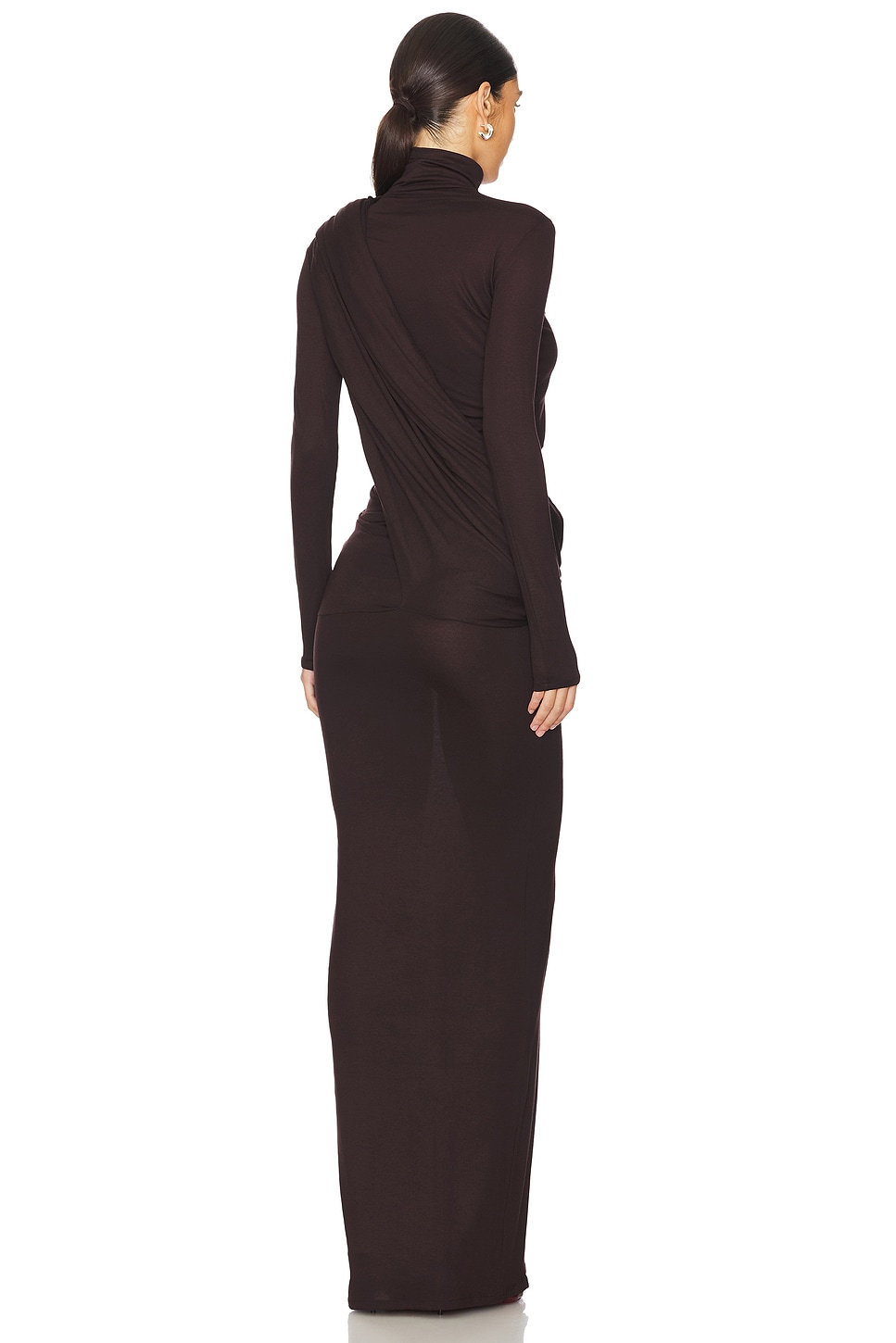 100% viscose Made in Georgia Machine wash Unlined Pull-on styling Turtleneck design Jersey fabric with draped overlay at shoulder and bodice Revolve Style No. LBOK-WD7 Manufacturer Style No. LBFW24DRVIBR06 |