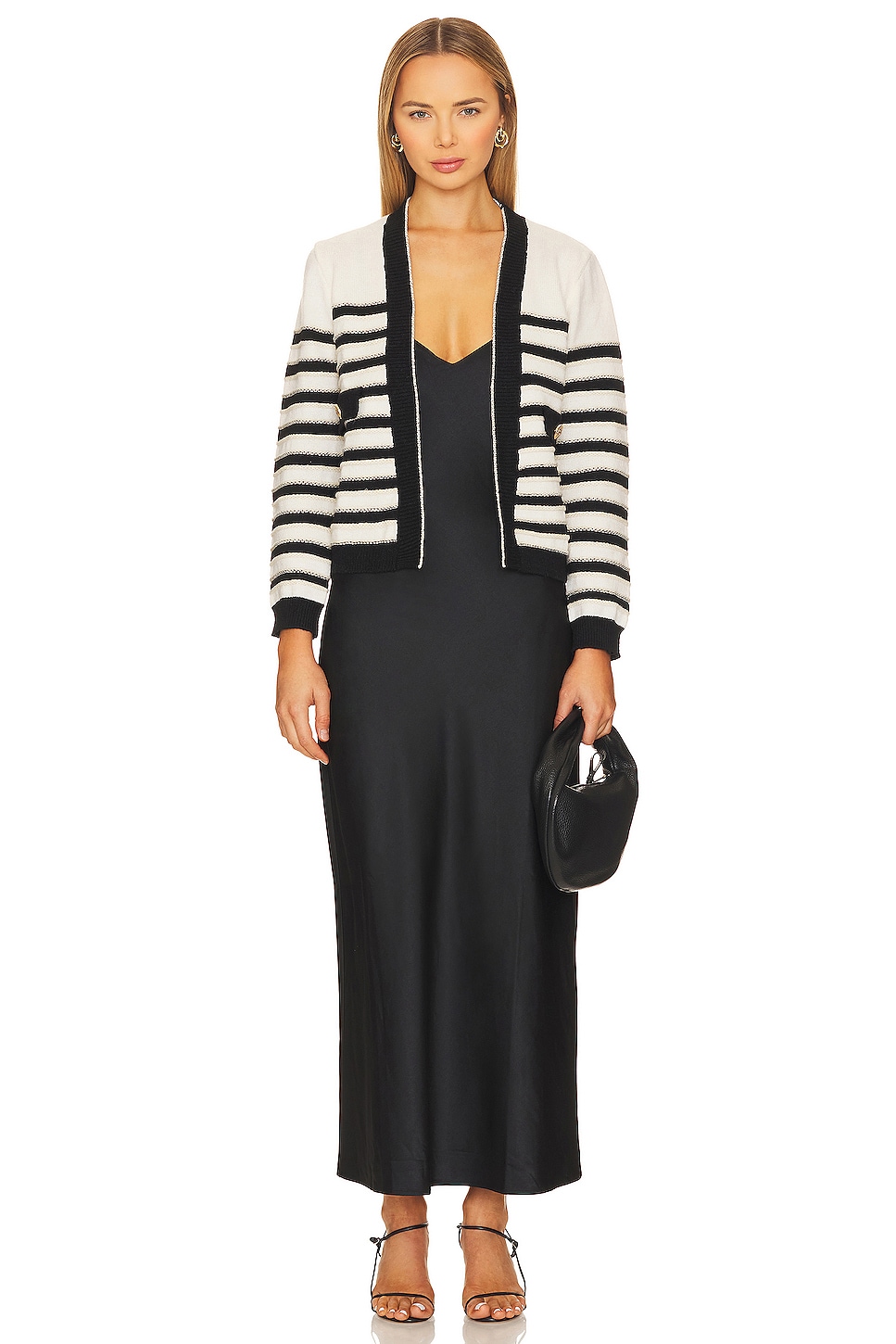 58% acrylic, 27% polyester, 15% nylon Made in China Dry clean only Open front Faux side flap pockets Knit fabric with subtle metallic threading throughout Revolve Style No. LEAX-WK182 Manufacturer Style No. LT4530B Line & Dot is a women's contemporary collection that instantaneously distinguishes itself by combining classic staples and modern European style. Every season, Line & Dot delivers an element of surprise with each style, marrying together with timeless femininity and vintage aesthetic. This creative blend results in a collection of effortless pieces that are perfect for any occasion. Line & Dot embraces all things wearable yet glamorous, creating a chic style that every woman aspires to achieve. |