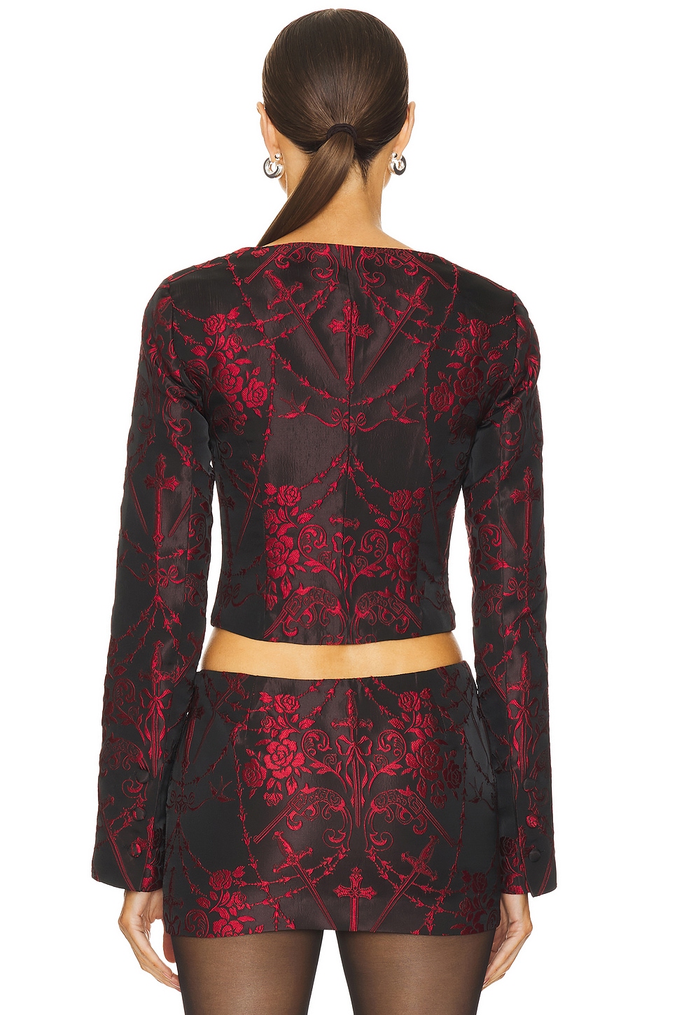 Self: 100% polyester Made in China Dry clean only Front button closure Boned bodice Midweight jacquard fabric Item not sold as set Revolve Style No. LOBR-WS57 Manufacturer Style No. LOS78 H24 |