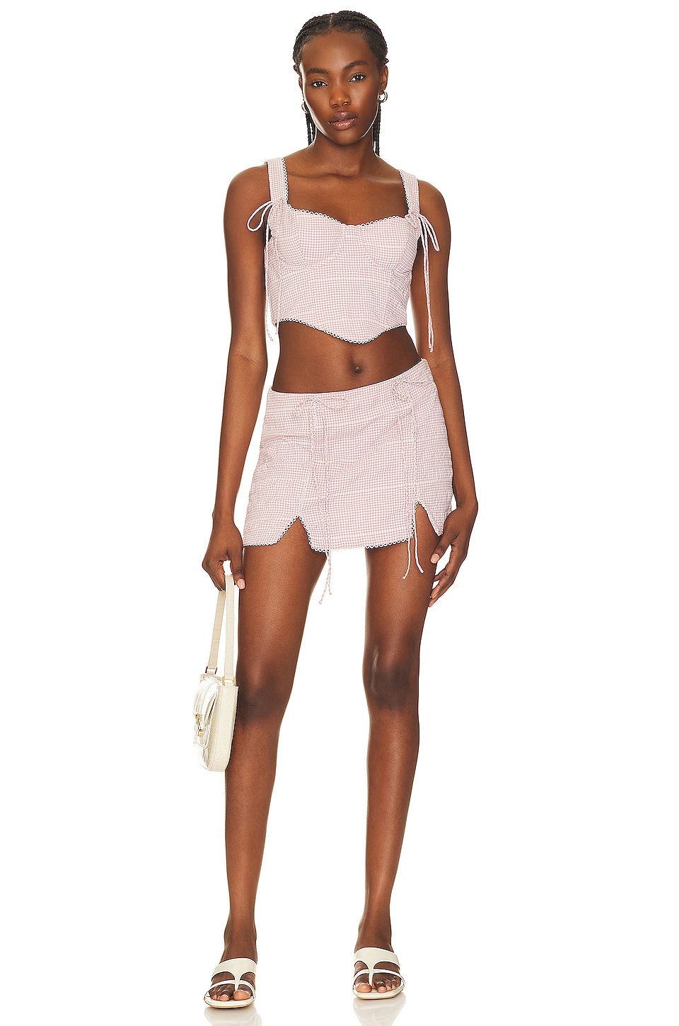 | Self: 98% polyester, 2% spandex Made in China Dry clean only Double lined Hidden side zipper closure Front tie details Lightweight seersucker fabric with notched hem Skirt measures approx 32 cm in length Revolve Style No. FORL-WQ210 Manufacturer Style No. CBS1842-SU23 Derived from those sun-soaked Lemonade Stand Days designers and owners, Gillian Mahin and Laura Hall are the masterminds behind the line For Love & Lemons. Born in Wyoming, finding their style niche in Australia and now based in Los Angeles, the collection is anything but conventional-rebelling against the standards of modern society. The line taunts with intrigue as a clash of colors and patterns are evoked by chic separates and devious dresses. Where the modern gypsy is punk, For Love & Lemons is a brand to relate to, for that girl that doesn't follow trends, she makes them. |