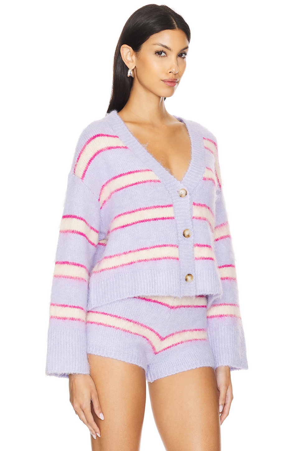 50% recycled polyester, 21% nylon, 11% polyester, 8% wool, 1% spandex Made in China Hand wash Front button closure Ribbed trim Midweight soft fuzzy knit fabric Item not sold as a set Revolve Style No. LSPA-WK46 Manufacturer Style No. MNTSW23 California-based designer Monica Wise delivers a collection of stylish swimwear that brings a state of opulence to any poolside get-together. Pieces are fashion forward, offering modern designs in luxurious materials that are sophisticated, but also beach appropriate. |
