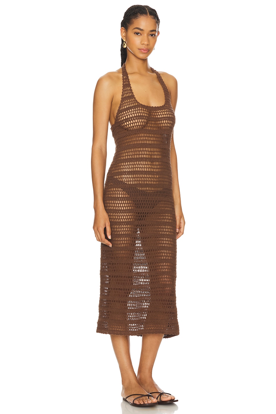 100% cotton Made in Indonesia Hand wash Unlined Halterneck tie closure Open knit crotchet fabric Garment is intentionally sheer, undergarments will show through. Revolve Style No. SHEM-WD9 Manufacturer Style No. SMM2284_24_CHOCOLATE Designed for everything from white sand beaches to backyard fetes, SHE MADE ME is an authority on the crochet bikini. Having crafted triangle tops, halter tops, bandeau styles, skimpy bottoms and more, the line has perfected the fit and shown a commitment to detail with beautifully handmade pieces. But SHE MADE ME does not only limit their talent to bikinis, their line of fashion tops and bottoms is equally enchanting. |