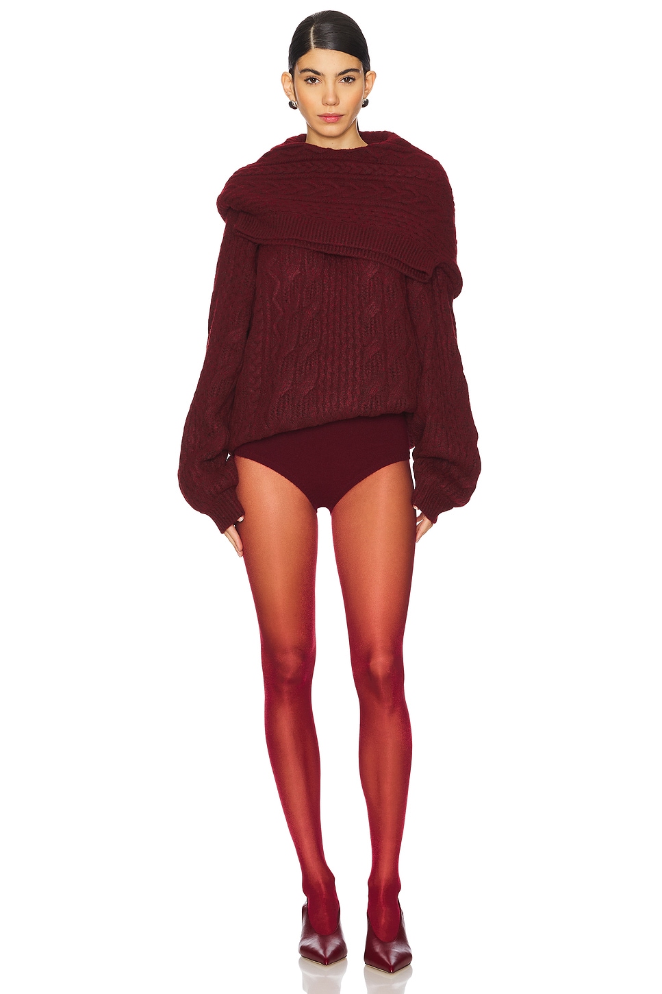 100% polyester Made in China Machine wash Pull-on styling Draped shoulder accent and ribbed trim Heavyweight knit fabric Revolve Style No. MRKN-WK3 Manufacturer Style No. MN24FW01102 |