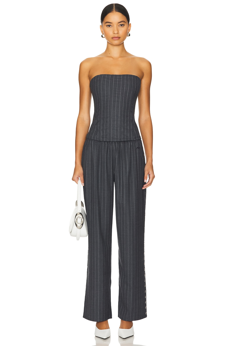 42% wool, 29% viscose, 28% polyester, 3% spandex Made in China Dry clean only Elastic waistband and interior drawstring Ring hardware at sides Lightweight twill fabric Item not sold as set 56 cm at the knee narrows to 48 cm at the leg opening Revolve Style No. MAOU-WP57 Manufacturer Style No. 1051PSWPSW Miaou is a collection of women's ready-to-wear popularized by designer Alexia Elkaim's coveted high-rise denim with a universally-flattering fit. Inspired by vintage flea market finds and 90's glam supermodels, Miaou brings in the effervescence of Paris, the casual chicness of New York, and the cool factor of Los Angeles - all cities where Elkaim was raised. The collection balances playful prints, sexy tailoring and mid-century French bombshell aesthetics for a hip and youthful retro-romantic vibe. |