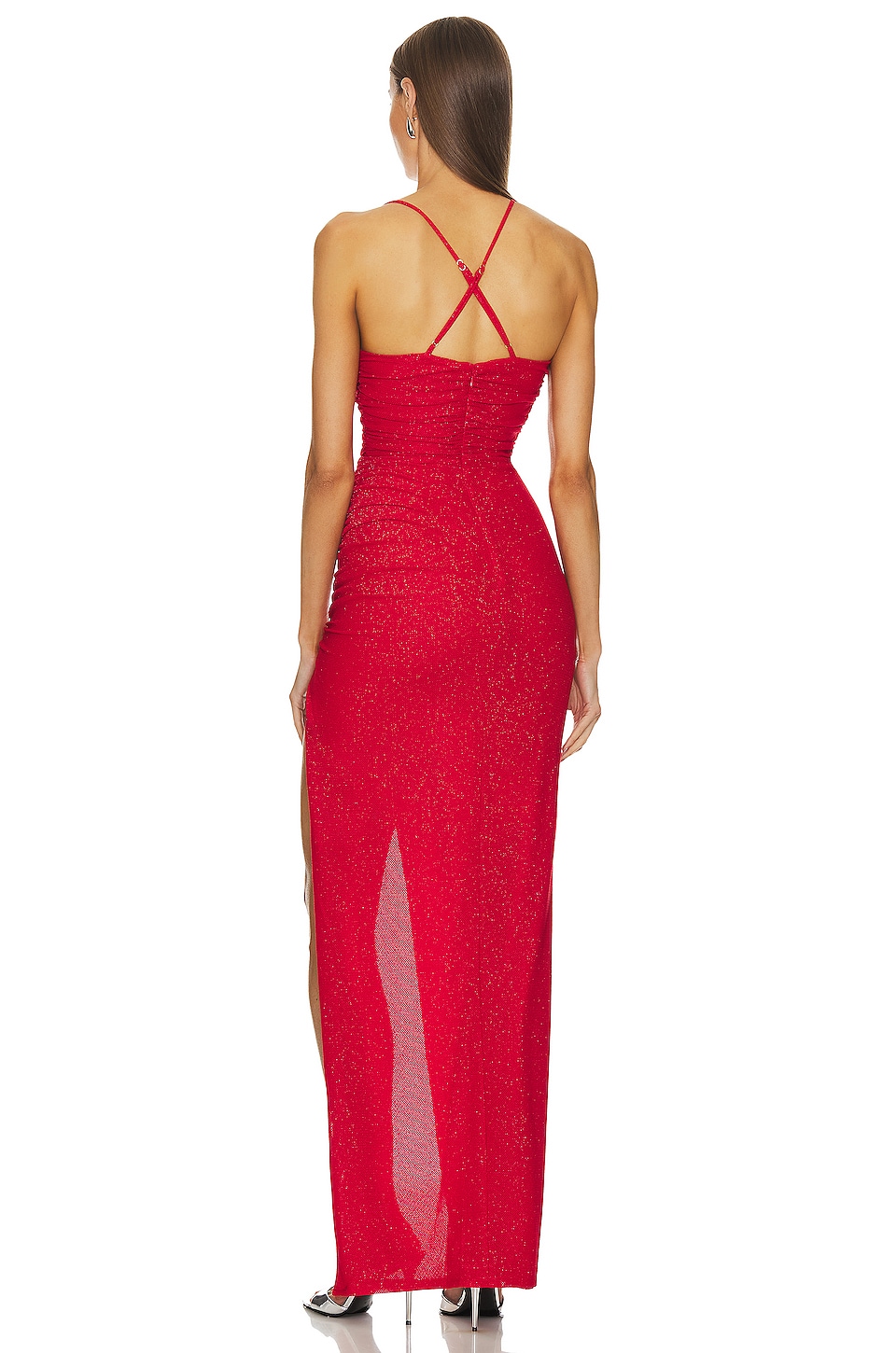 Self: 72% nylon, 20% lurex, 8% spandex Made in China Dry clean only Fully lined Hidden back zipper closure Adjustable crisscross back straps Ruched jersey fabric with metallic threading throughout and side seam slit Revolve Style No. MELR-WD894 Manufacturer Style No. MCD1170 F23 A specialist in statement gowns, Michael Costello has dressed the likes of Beyonce, Cardi B, Kim Kardashian, and Lady Gaga. He became a household name in 2010 after appearing on Project Runway, and has since established himself as a designer of sexy show-stoppers. Think draped, jewel-toned fabrics alongside curve-flattering silhouettes with high slits and open backs. Guided by the principle that everyone should feel confident when they dress, Michael Costello is meant to be worn by women of all shapes and sizes. It is the ideal label for those nights that call for something striking and unapologetic to strut, spin, and sashay in. |