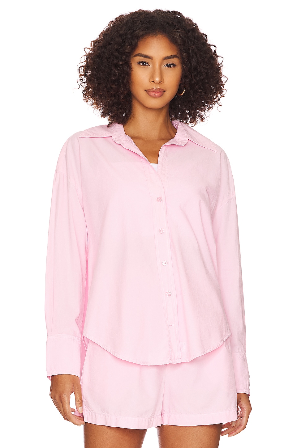 Cotton blend Imported Machine wash recommended Front button closure Buttoned cuffs Shirttail hem Poplin fabric Item not sold as a set Made in China Revolve Style No. HARL-WS995 Manufacturer Style No. HT1218-2 Born and based in Los Angeles, MONROW captures the essence of luxe-leisure with quality, fundamental pieces for everyday. Designer Megan George's dedication to innovative fabrications and perfect fit has catapulted the brand to a cult favorite wardrobe essential. |