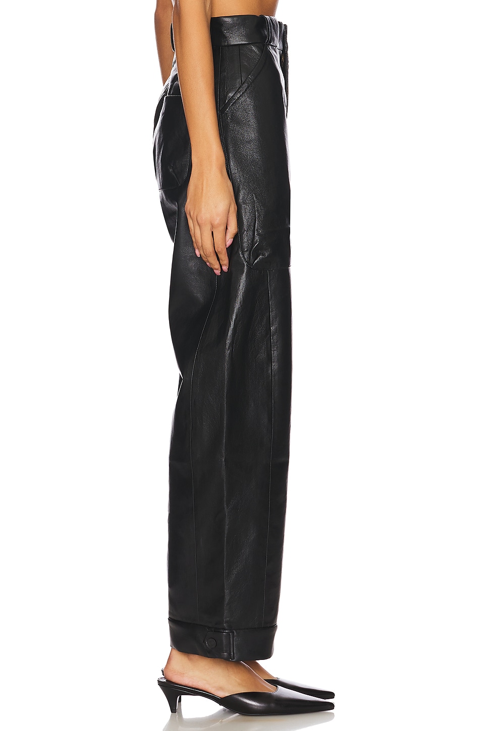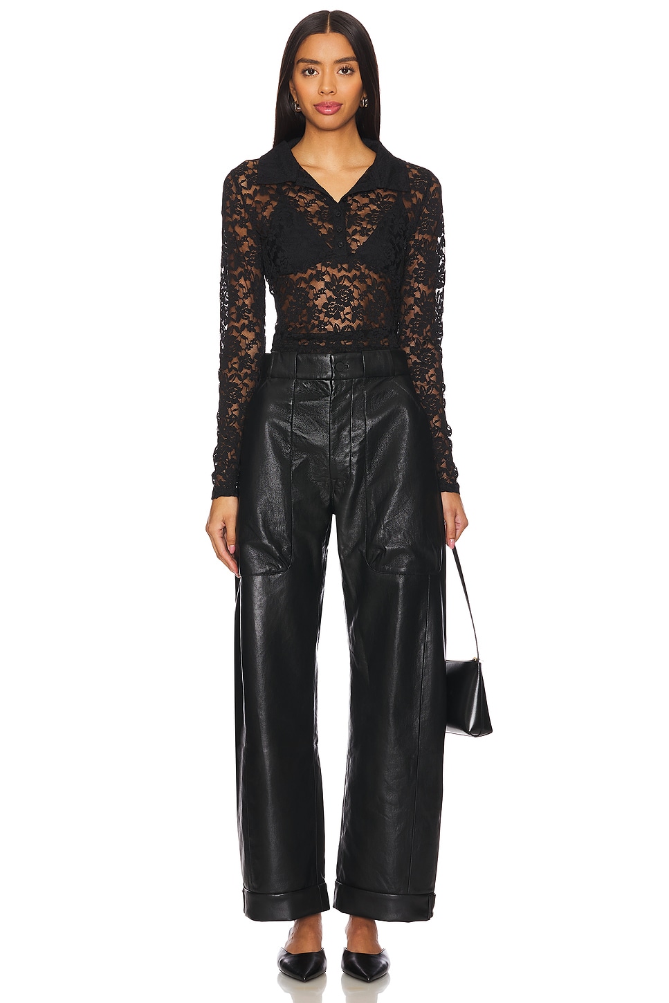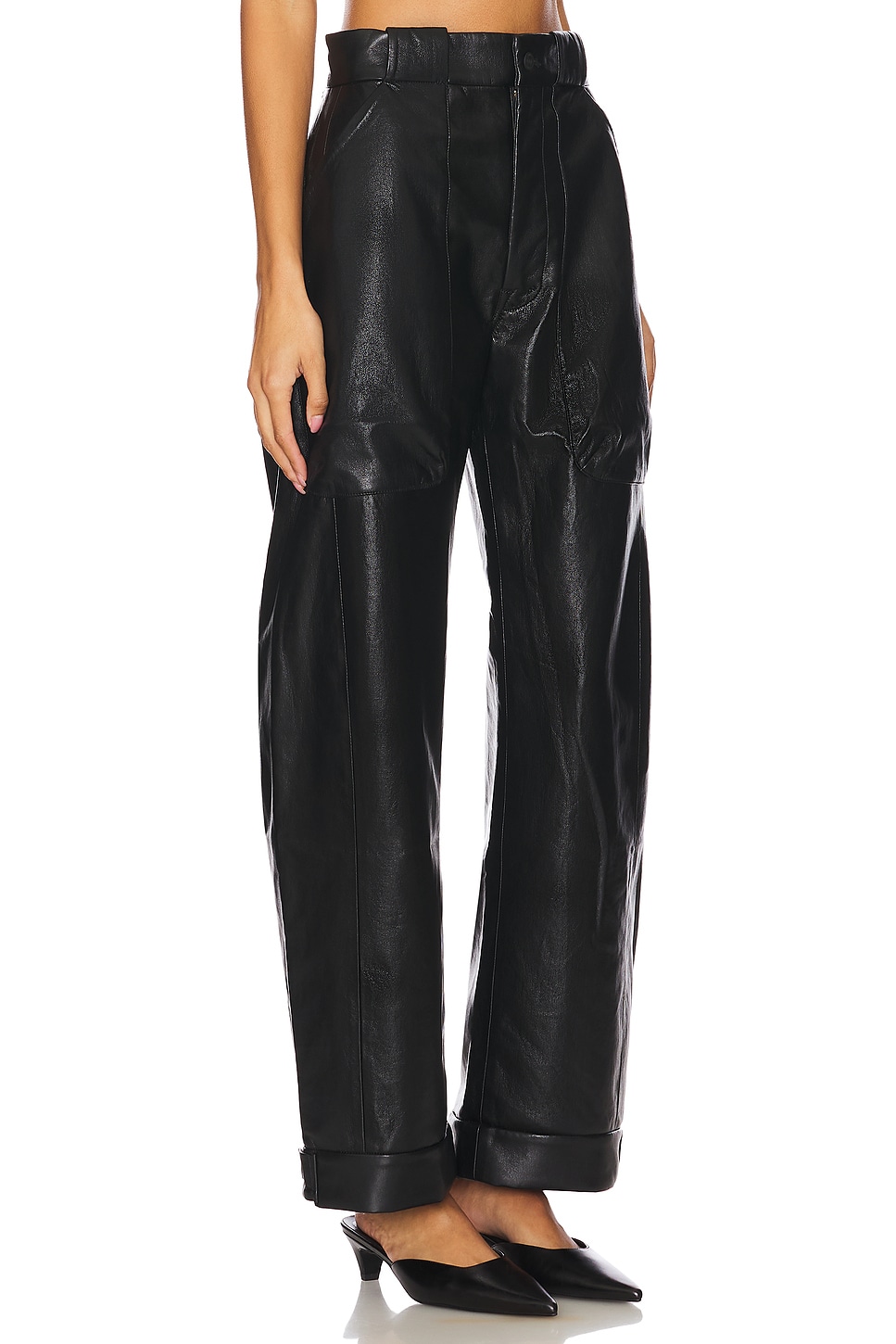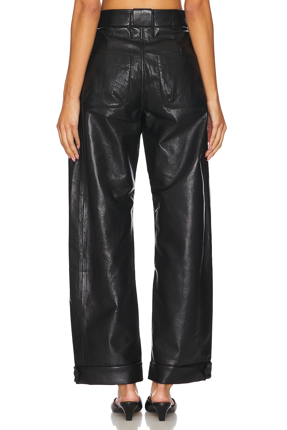 Self 1: 100% polyurethane Made in China Dry clean only Fly zip with button closure 4-pocket styling Midweight leather fabric 56 cm at the knee narrows to 46 cm at the leg opening Revolve Style No. MOTH-WP135 Manufacturer Style No. 11166-1632 Los Angeles-based denim vets Tim Kaeding and Lela Tillem debuted MOTHER in the fall of 2010. Their collection offers a stellar fit, ultra comfort, and denim made from fabrics that are soft, stretchy, and cashmere-like. Expect your favorite styles reinvented along with bell bottoms and not-too-skinny skinnies. |