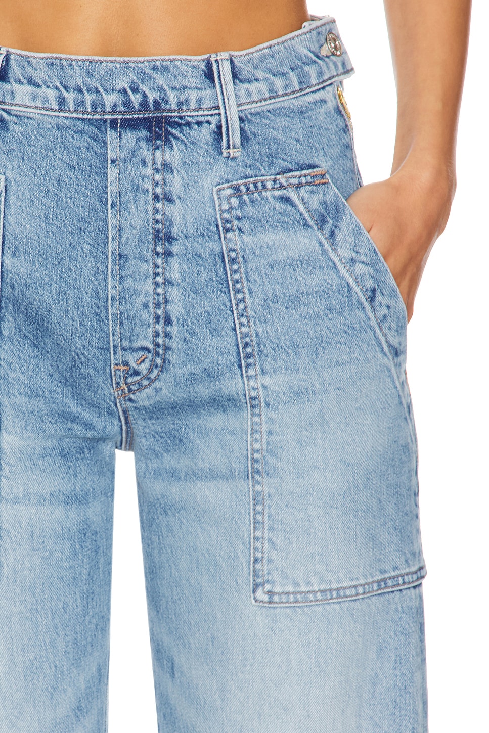 59% cotton, 40% lyocell, 1% elastane Made in USA Machine wash Hidden side zipper closure 4-pocket design Heavy whiskering and fading detail Subtle stretch denim fabric 48 cm at the knee breaks to 51 cm at the leg opening Revolve Style No. MOTH-WJ1616 Manufacturer Style No. 10838-1296 Los Angeles-based denim vets Tim Kaeding and Lela Tillem debuted MOTHER in the fall of 2010. Their collection offers a stellar fit, ultra comfort, and denim made from fabrics that are soft, stretchy, and cashmere-like. Expect your favorite styles reinvented along with bell bottoms and not-too-skinny skinnies. |
