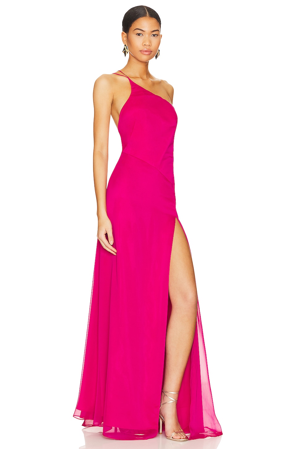 100% polyester Made in United Arab Emirates Dry clean Fully lined Hidden back zipper closure On shoulder styling Chiffon fabric with high side seam split Revolve Style No. NAFR-WD5 Manufacturer Style No. DRSS-17-RS23-ISG |